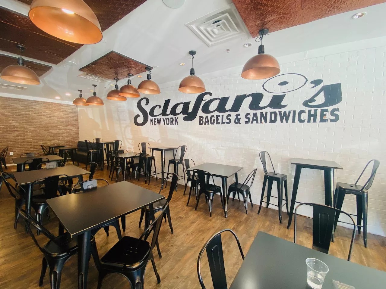 There’s plenty of space to sit and enjoy a bagel and coffee inside Sclafani’s new space in Preston Center.