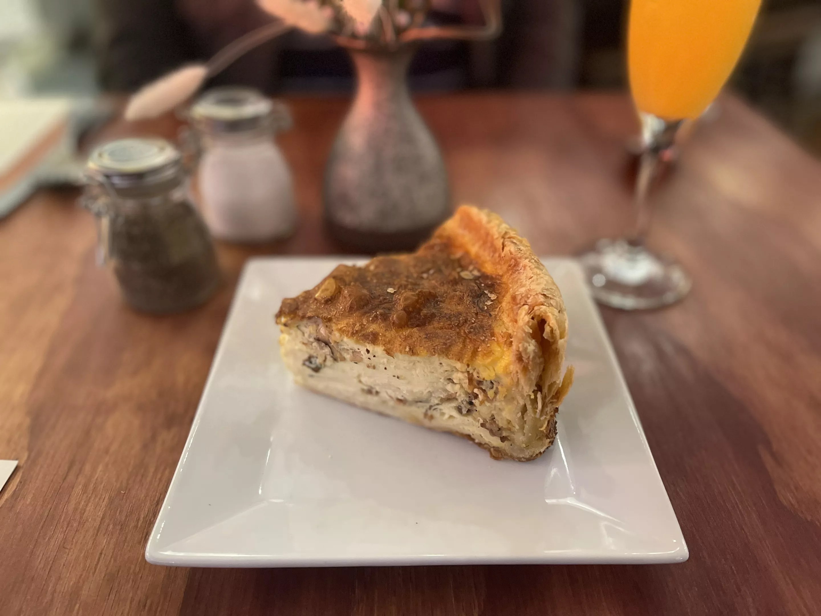 We started with the quiche Lorraine, which was at least 2 inches thick with fluffy eggs and bacon in a handmade crust. We ate only a few bites because we wanted to order other dishes and quite selfishly wanted to save the breakfast for the next day. But those few bites were certainly memorable. Next, we had a cup of their tomato basil soup. The portion size served was closer to what we would consider a bowl.