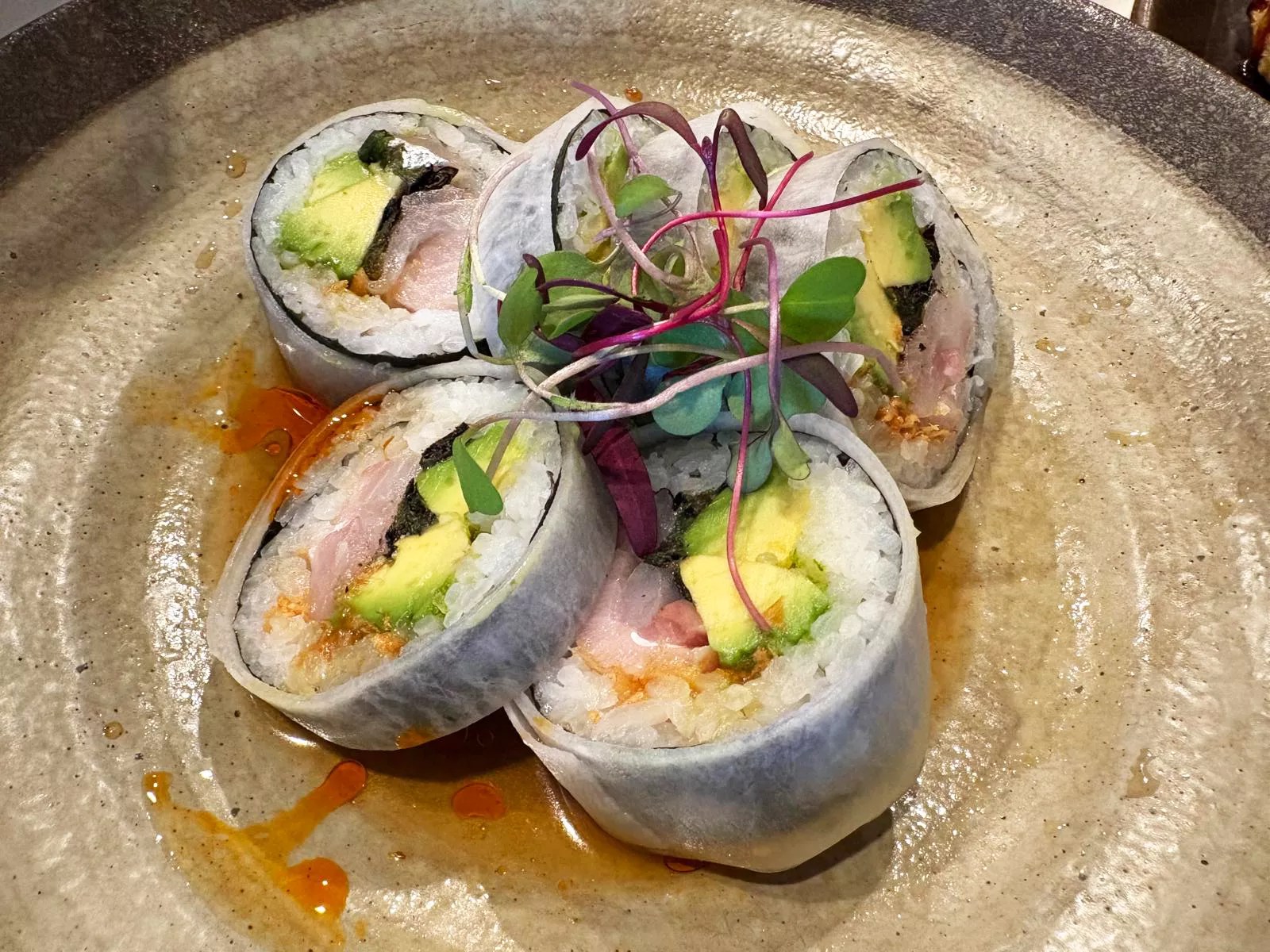 Sitting at the sushi bar gives one the best view of the daily offerings imported from Toyosu Market. Bluefin tuna in three formats is available, but obviously, one should always try the bluefin otoro (tuna belly). Other featured items are kanpachi, a type of amberjack and engawa, a special muscle from a flounder fin.
