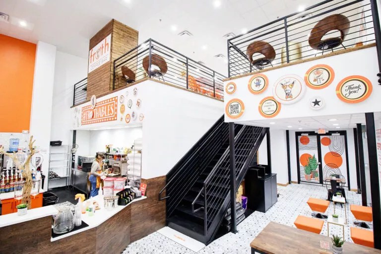 Froth has a sister concept, The Rolling Pin Bakeshoppe & Cafe, an all-scratch kitchen the provides a full menu of breakfast, lunch and sweet items including quiches, breakfast burritos, bagel sandwiches, bagollis, waffles, flatbread pizzas and more. The dessert menu has unique items like Biscoff cheesecake, Jolt shake and chocolate chip cookie sundae.