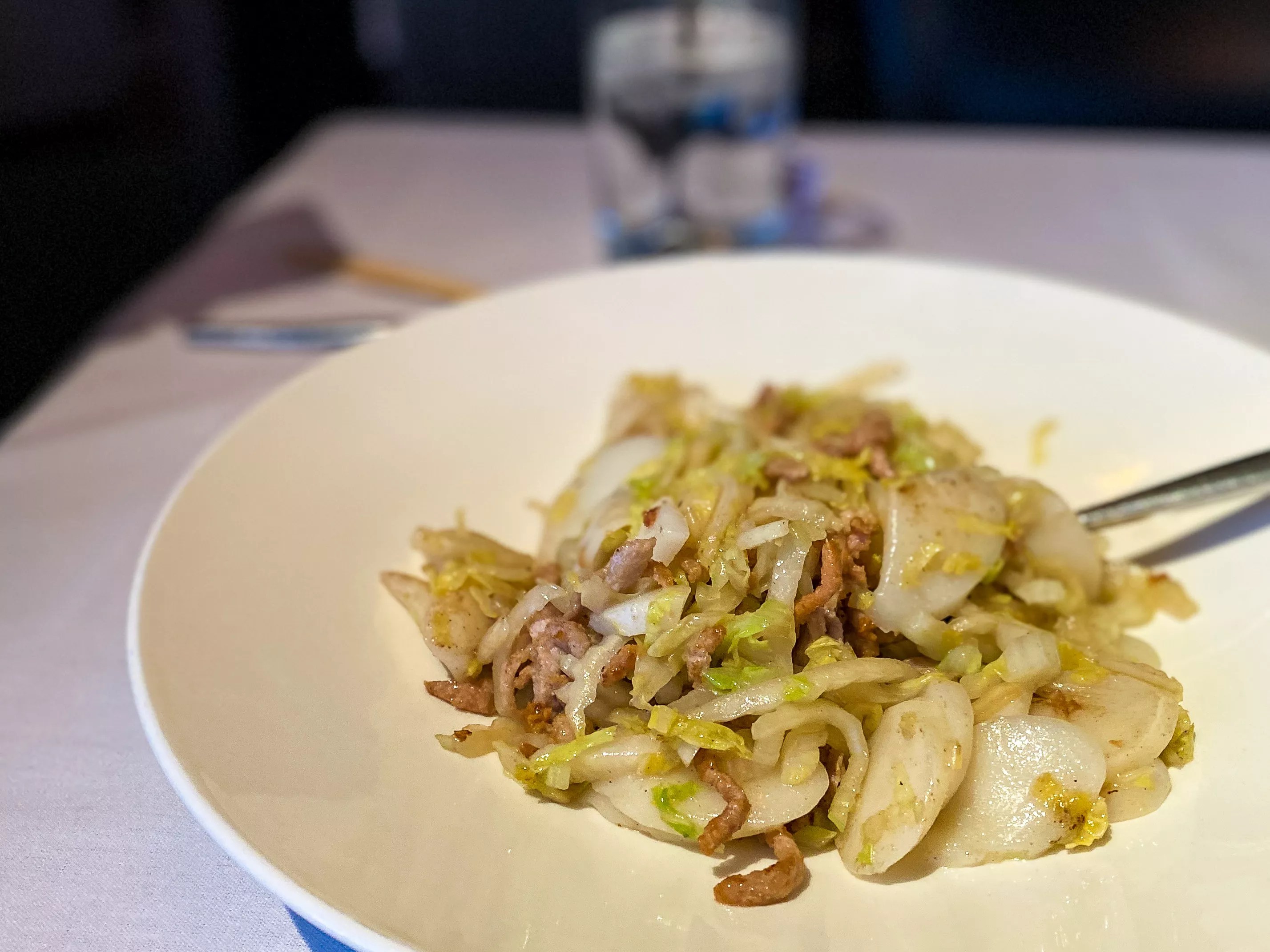 Chao nian gao is a Chinese dish from Shanghai that at its core is stir-fried rice cakes (made with glutinous rice flour) and cabbage, typically eaten during the Lunar New Year because it’s supposed to bring good luck. If you can find it on your favorite Chinese restaurant’s menu, it might be called “chao nian gao” or “stir-fried rice cakes” or perhaps “sticky rice cakes”… that is, if you can find this at all. And that’s the point: As good as this offering is, for some reason it’s hard to find in the DFW area, even around Lunar New Year.
