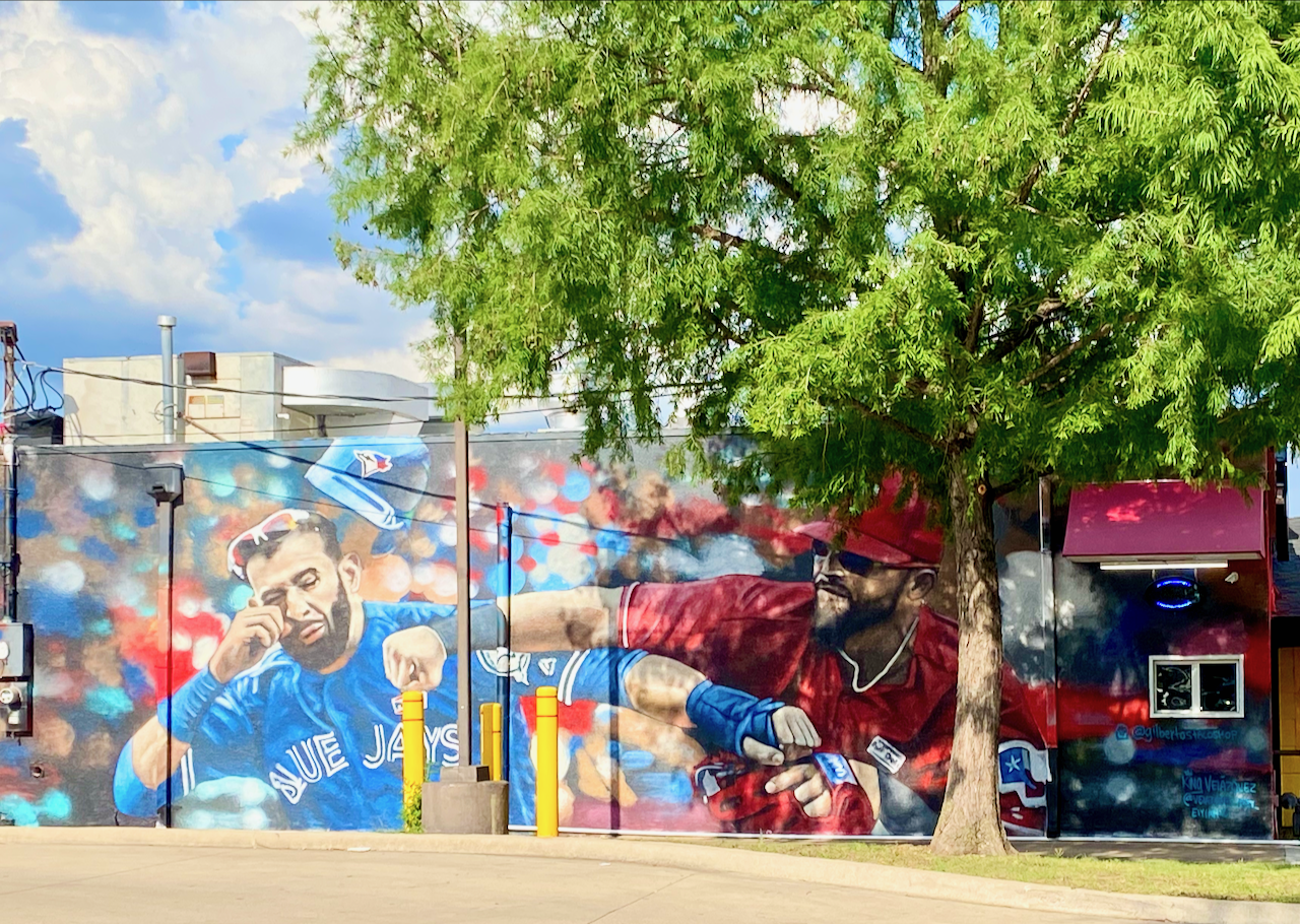 Gilberto’s Taco Shop on Park Row in Arlington has gained a lot of recognition for a mural on an outside wall depicting former Rangers second baseman Rougned Odor punching Jose Bautista of Toronto Blue Jays during a game in 2016. The artwork was created by local artist Juan Velázquez.