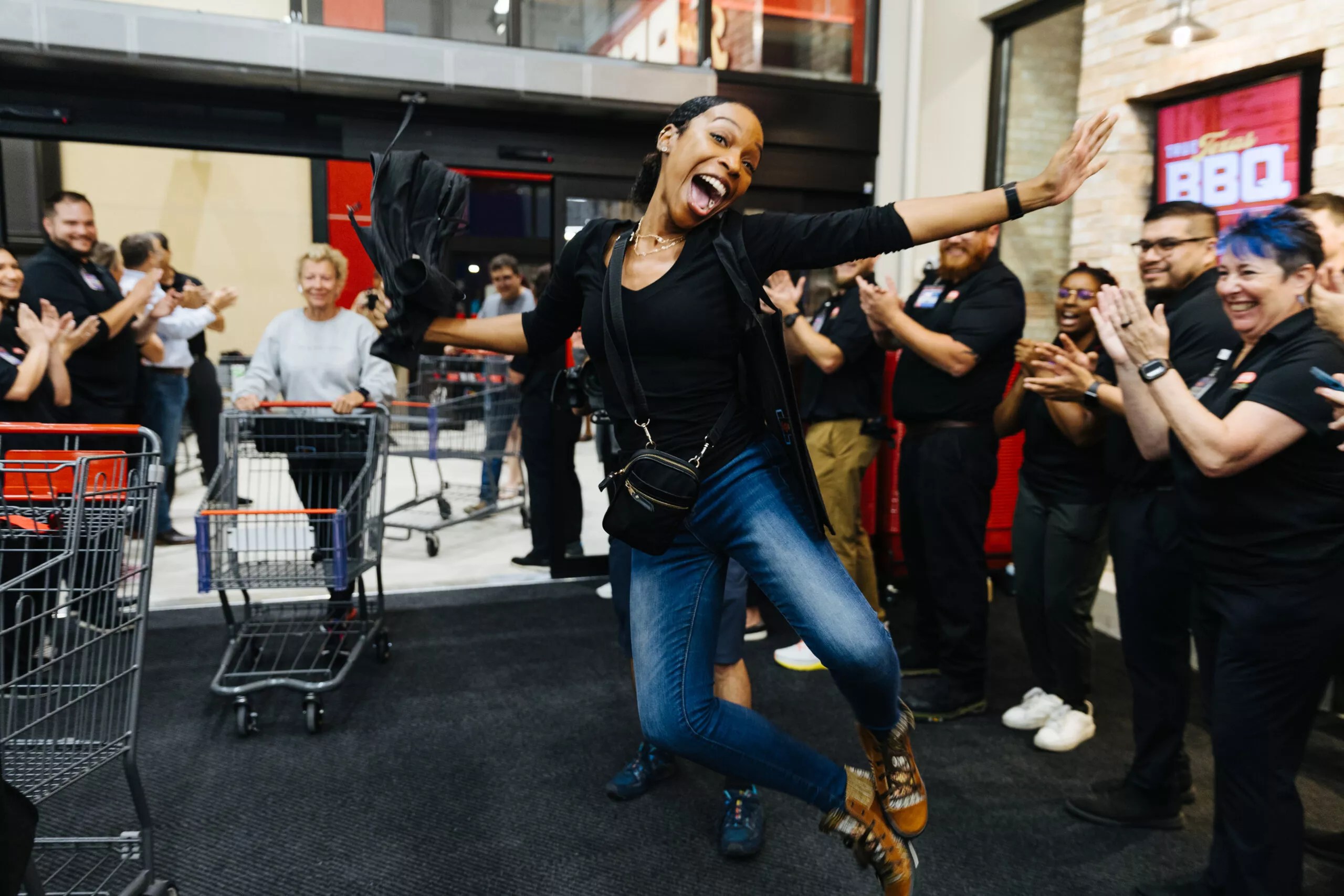 Dicky Billy posted on the North Texas H-E-B Fanatics page that he arrived at 3:25 a.m. today and was the 20th person in line. He was a little disappointed at receiving only a $25 gift card, a free shopping bag and free coffee and beignets … then changed his mind: “Okay they were generous, and this was fun.”