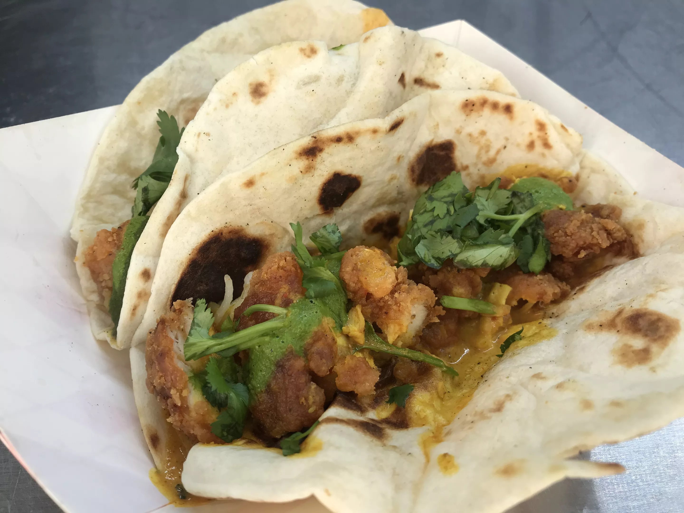 Halal Mother Truckers cooks up fun tacos with fillings like butter chicken and chicken tikka masala.