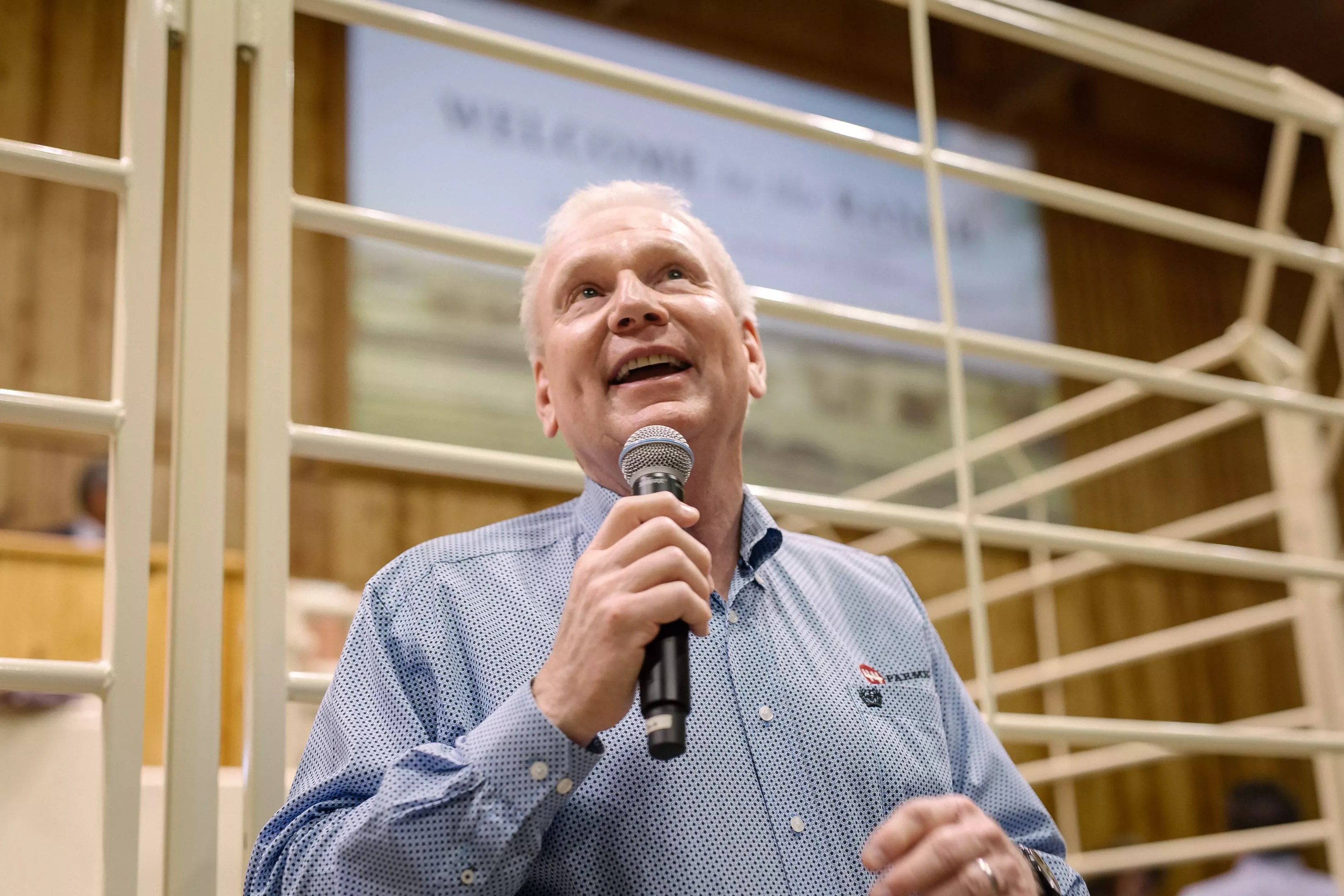 44 Farms owner Bob McClaren opens the auction with a prayer.
