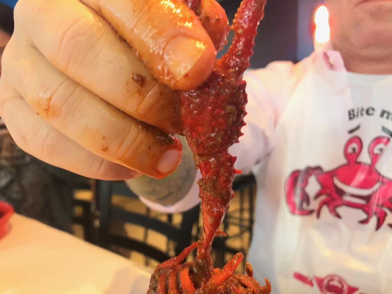Some places, such as Shell Shack, toss the crawfish in a thick roux-like sauce. If a dab lands on your shirt, it’s probably not coming out. So, don’t wear your favorite white shirt, put on a bib and roll your sleeves up so you can dig in.