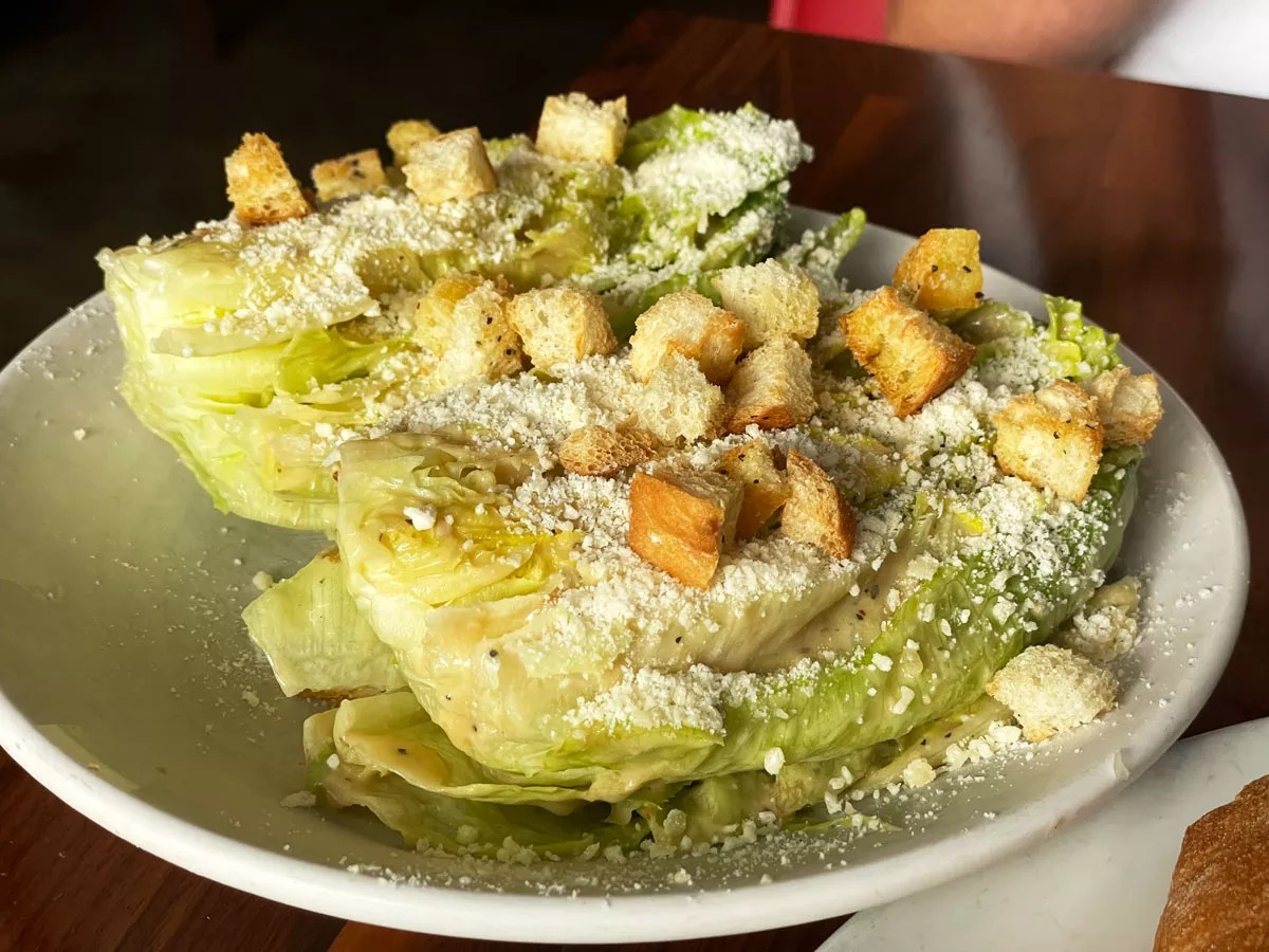We’ve been on a caesar salad kick, so that was a shoo-in to be a favorite. When is it not? This one is served as a half head, which can normally make for a dry salad, but they drizzle the dressing between all the leaves and give you a generous amount of toppings.