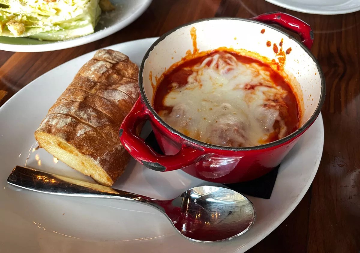 We didn’t miss out by visiting for dinner service, though. We had a full spread of those house-made meatballs, caesar salad, cacio e pepe and tiramisu.