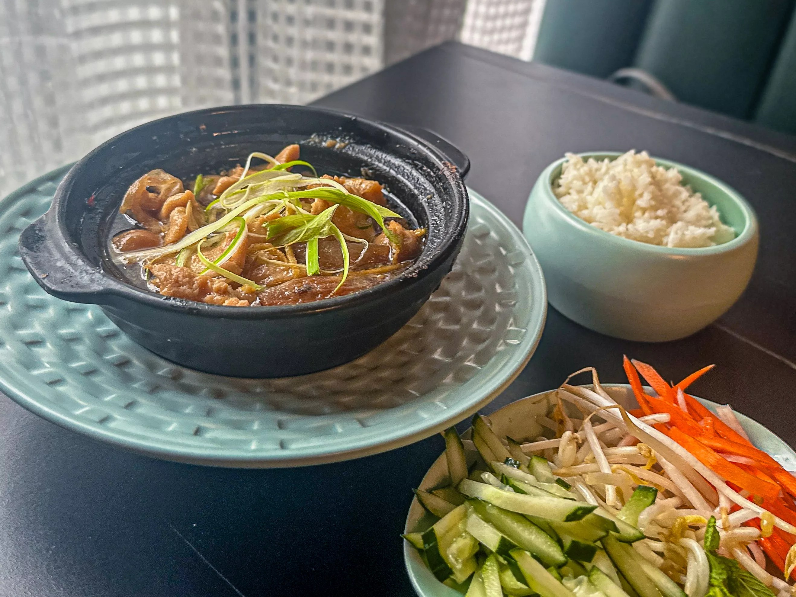 Finally, we rounded off the lunch with the clay pot ginger chicken. This came in an earthenware pot with a generous side of cucumber, bean sprouts and carrots and a bowl of steamed rice. The pot was jam-packed with white meat chicken, with shallot, fish sauce, coconut juice and a plethora of hard-boiled quail eggs rounding it all out, the broth and rice making a nice medley.