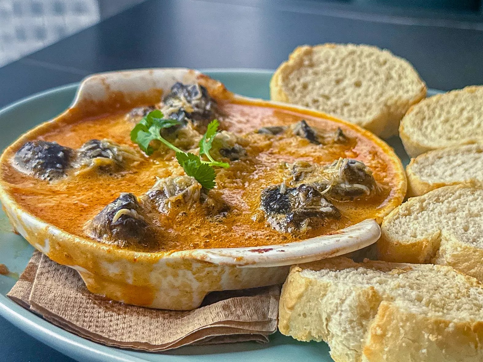 The escargot arrived on a traditional serving plate along with several slices of toasted baguette. These were in a rich and flavorful curry-centric sauce, and they did not skimp on the escargot: there were easily a dozen of them, each divot in the plate housing more than one. There were plenty, but within a few minutes the escargot was escar-gone.