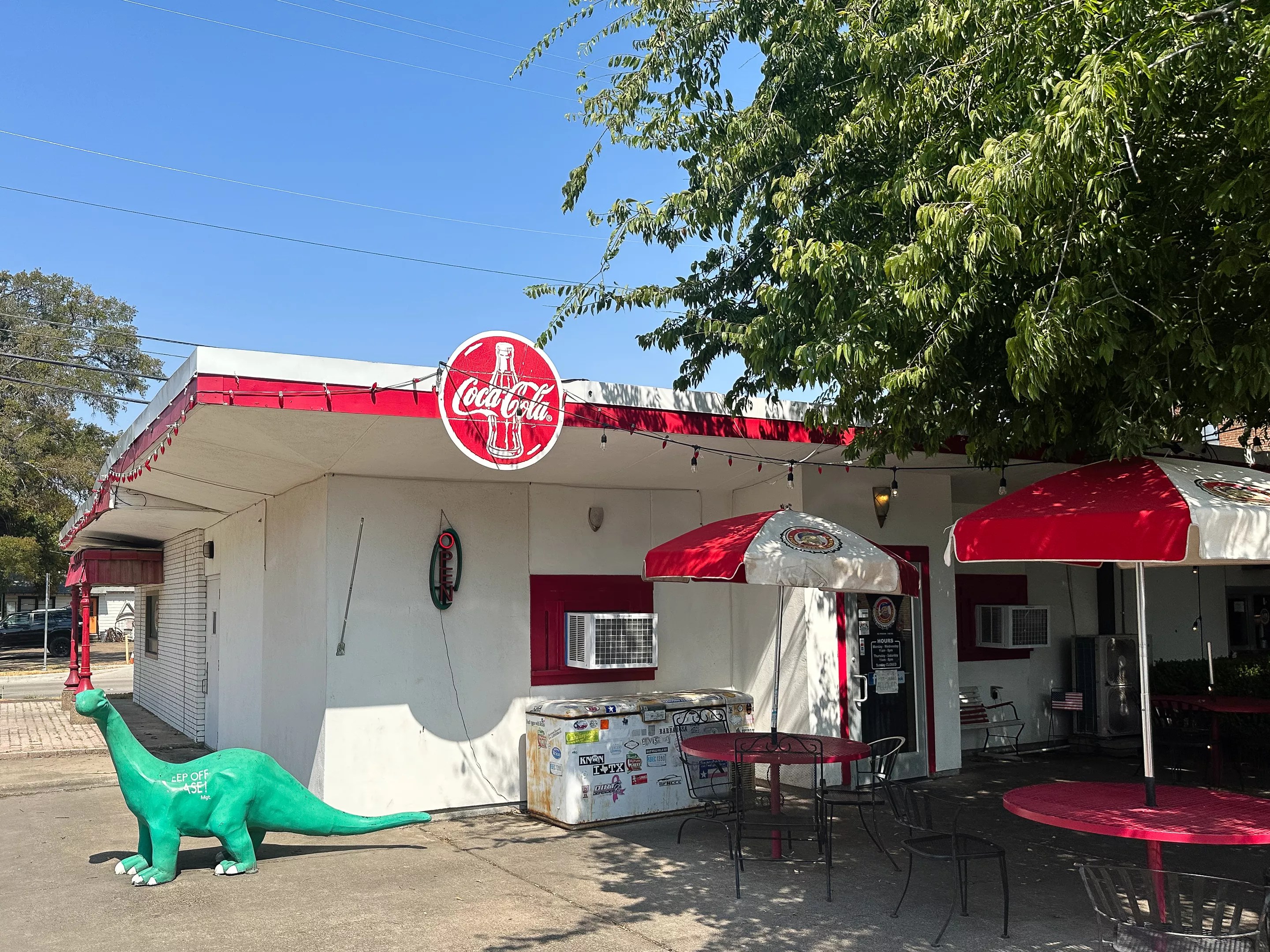 Pop’s is an unassuming building on a corner in downtown Waxahachie where a little dino greets all comers.