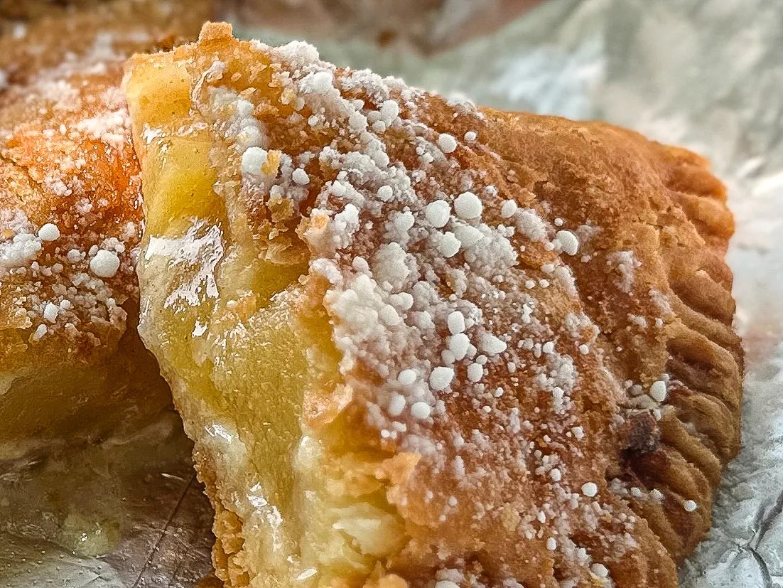 The fried pie was big enough to share, which we did outside on the patio, enjoying the mid-90-degree weather and slight breeze that came across as almost fall-like after all the 105-plus days we’ve all endured as of late.