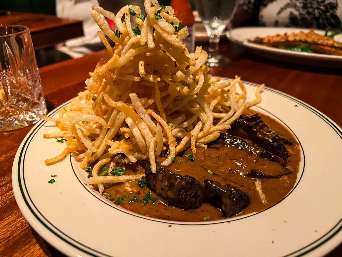 Steak frites comes with the biggest pile of fries we’ve ever seen on the dish.