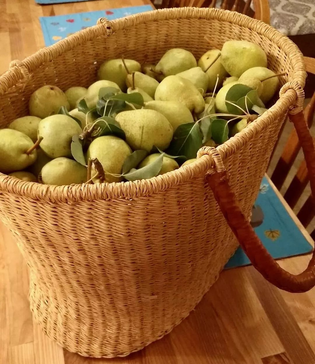 “A friend of mine lives in North Dakota, and her pear trees just exploded,” Collins says, explaining a huge basket of pears in her kitchen. “She works for American Airlines and flew down here with 30 pounds of pears. Can you imagine taking those through security?”