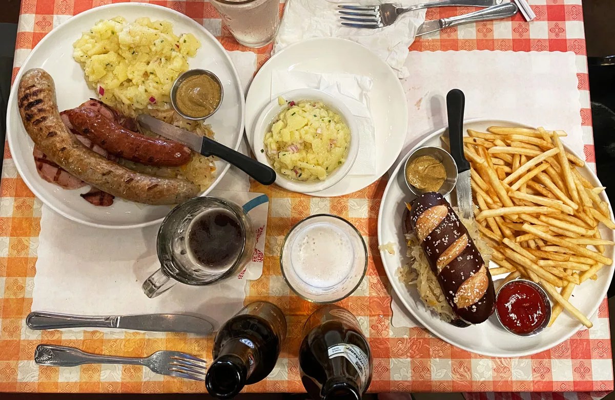 Finally, as important as it is to start your meal with a beer, it’s just as crucial to end it with apfelstrudel (apple strudel). It’s a thin, apple-filled pastry with cinnamon, sugar and raisins between layers of pastry. Theirs is served just right, with whipped cream and a sweet vanilla sauce on the side.