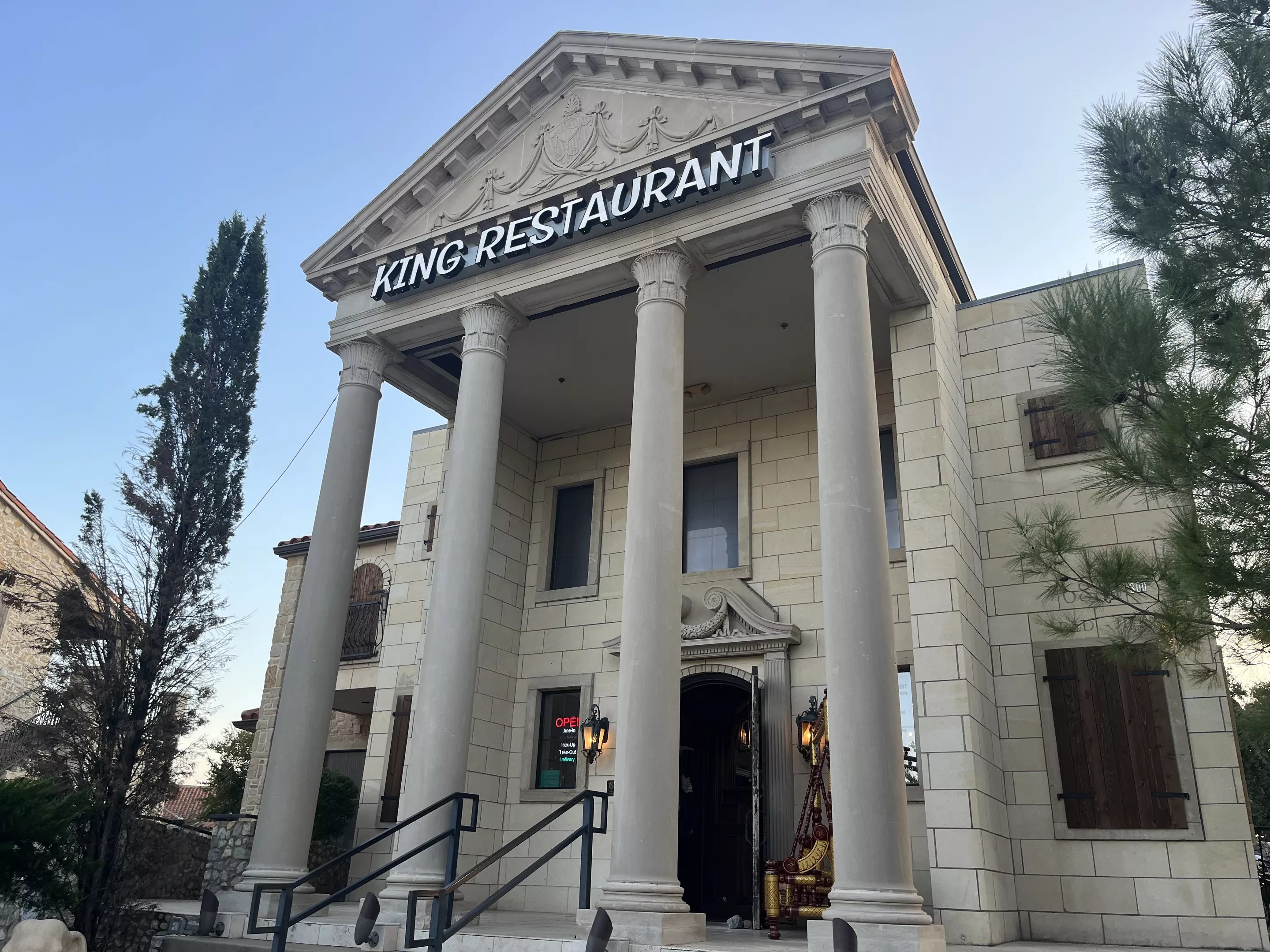 Built to look like a mid-century Indian palace, King Restaurant is a real diamond in the rough in McKinney. The restaurant rises 50 or so feet off the ground and is dotted with wooden-planked windows and elephant statues. The building emanates a 1900s grandeur, boasting imposing columns and a golden porch swing out front.