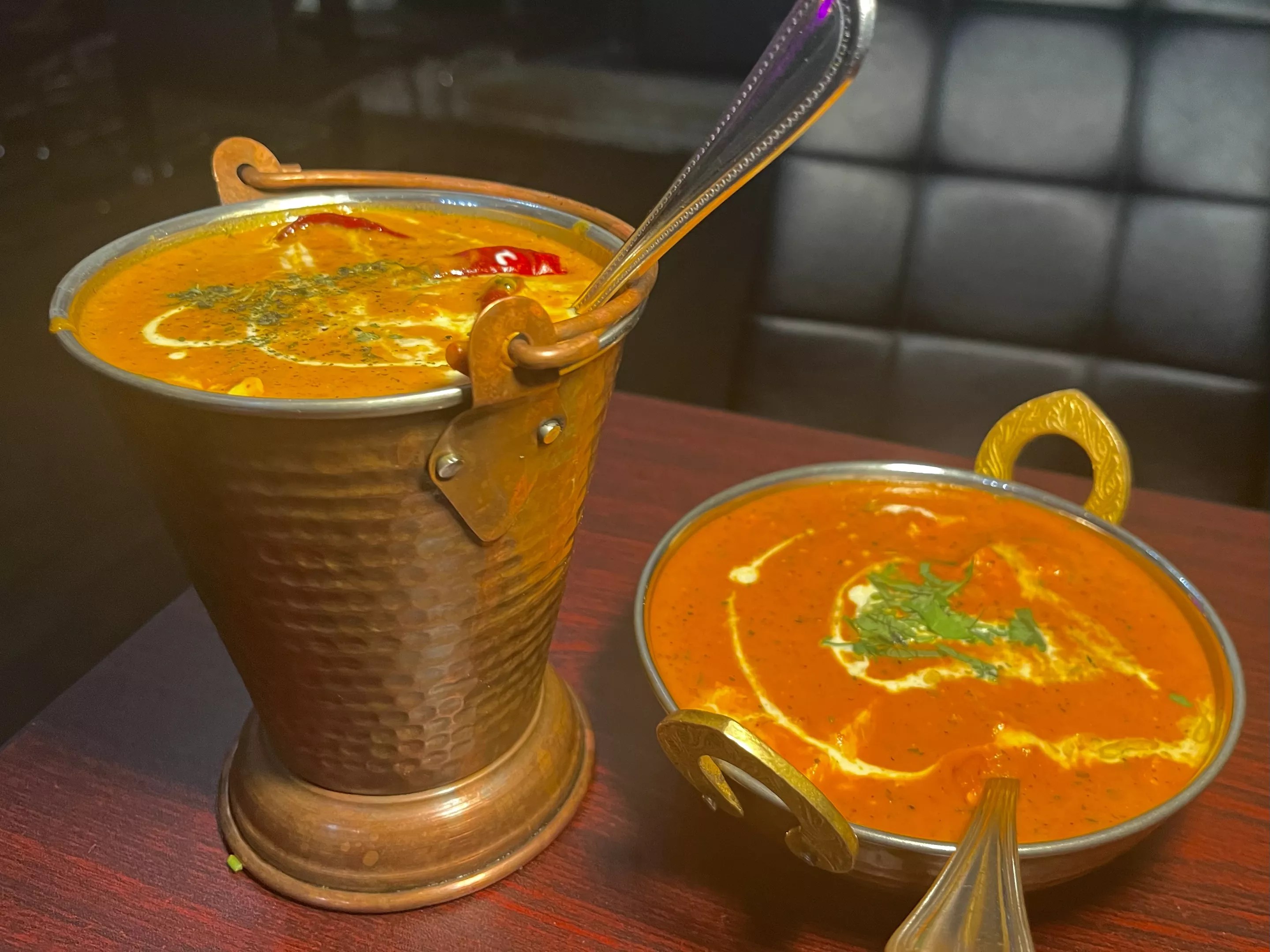For the heartier appetite, you can, of course, enjoy the classic dish of butter chicken or paneer tikka. A more regal option might be the homemade baltis, a classic Punjabi dish that’s been cooked in a steel wok. Creamy, coconut tones underlie curries like the paneer karara and the chicken masala, all of which are served in a steel dish.