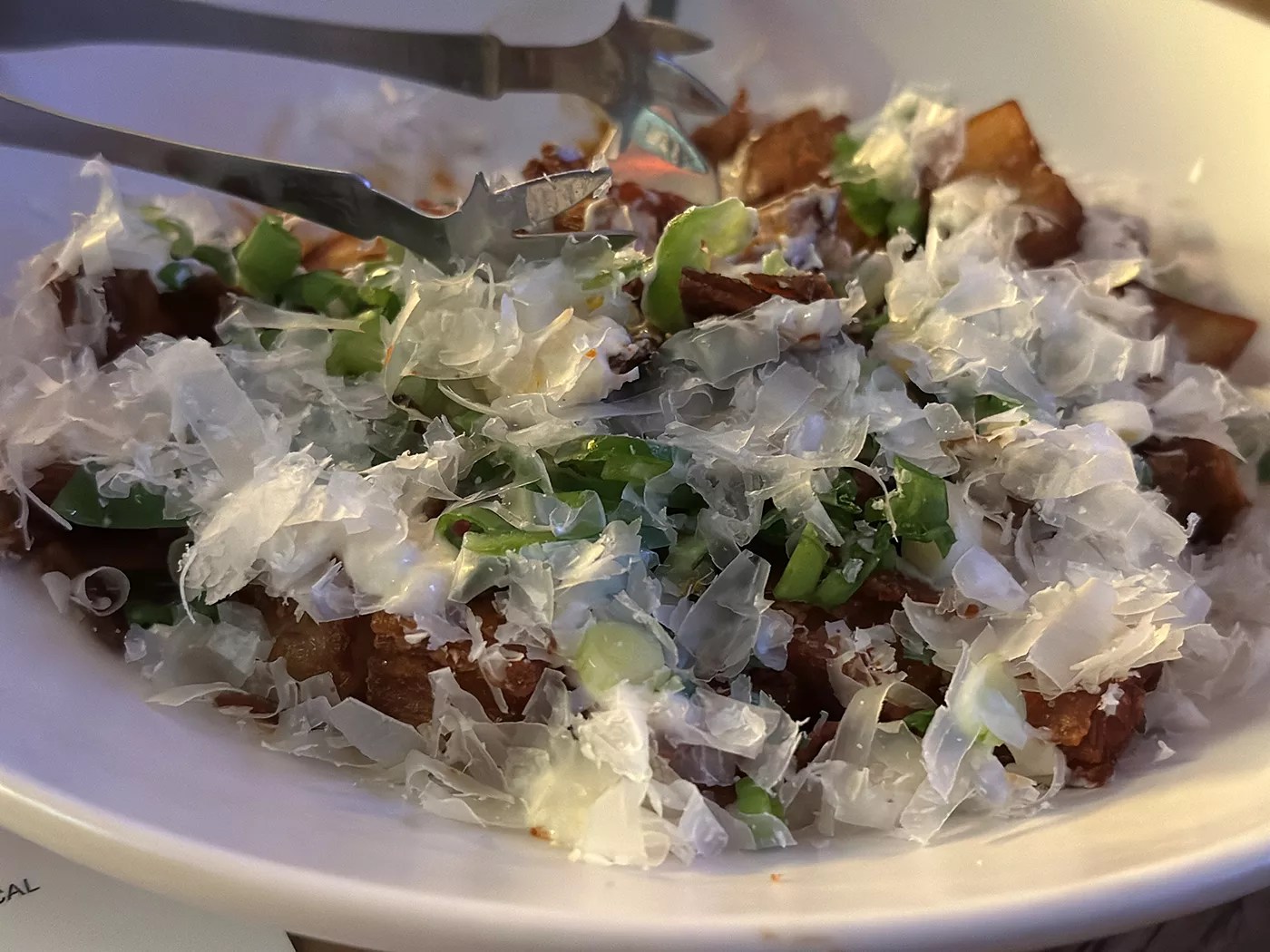 Fully loaded crispy potatoes topped with shaved grana padano.