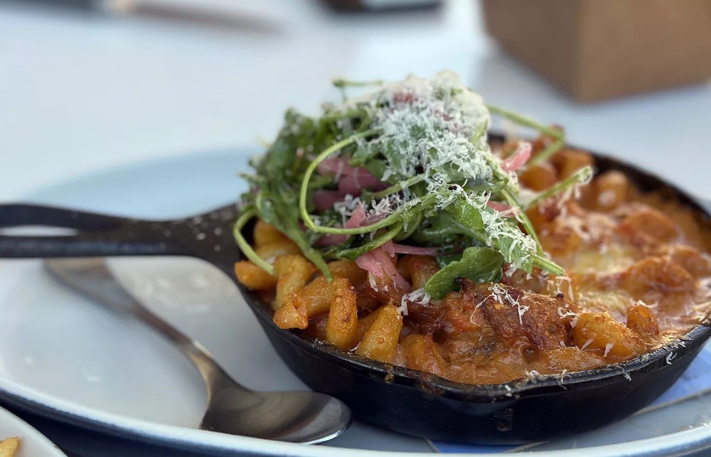 For mains, we went for a classic and a risk. Steak and fries ($22) is a 5-ounce certified Angus beef sirloin served with fries and topped with a lemony dijon peppercorn sauce. It fits right into Dallas’ meat and potato appetite. Pulled pork baked pasta was a winner. Desiree Gutierrez