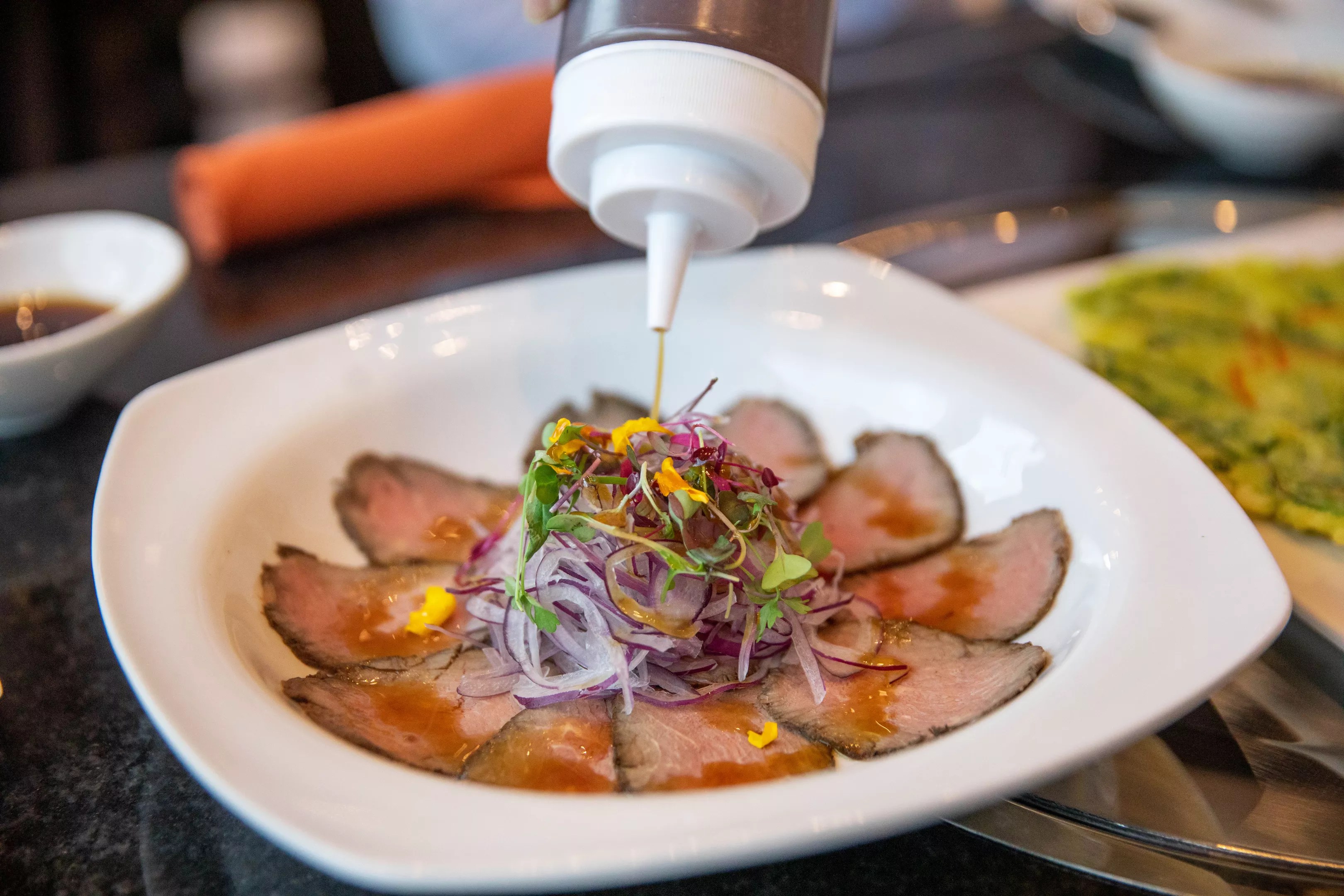 If you’re not in the mood to eat your body weight in grilled meat, the restaurant also serves dishes like hot stone bibimbap and soondubu jigae, a traditional Korean soft tofu soup that “features a sauce made with 17 different ingredients and fermented for four days,” according to the release. On the lunch menu, you’ll find “fusion favorites” like Korean tacos, kimchi pork belly sliders and Korean-style ramyeon, “a soup similar to Japanese ramen that became popular in Korea in the 1960s.”