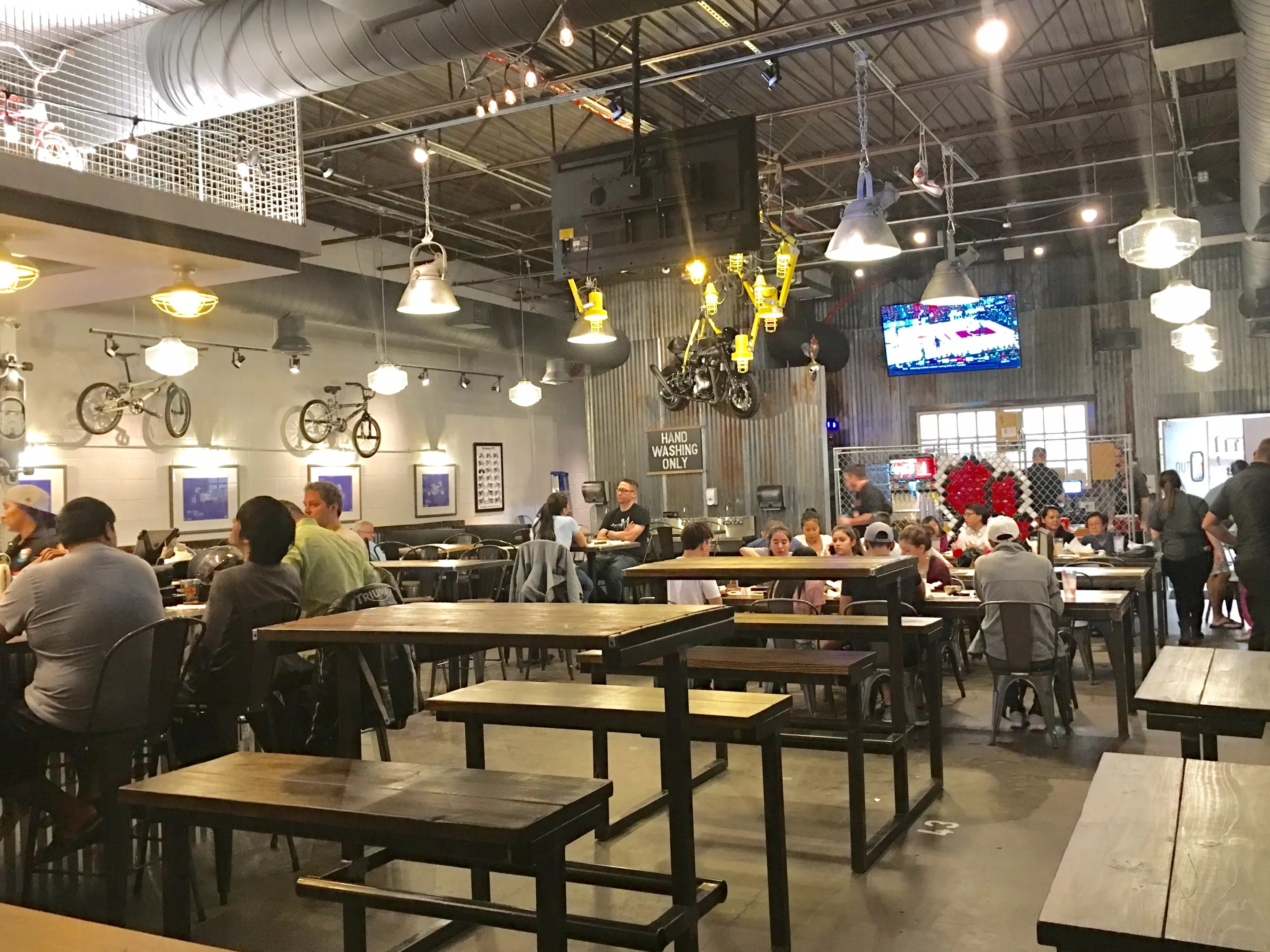 Since it was opening night, the staff was still working out some kinks, but the food turned out well. The garage-turned-restaurant still felt shiny and new, with a light fixture mimicking modern art, a halfway-opened garage door facing Central Expressway and bicycles hanging from the wall.