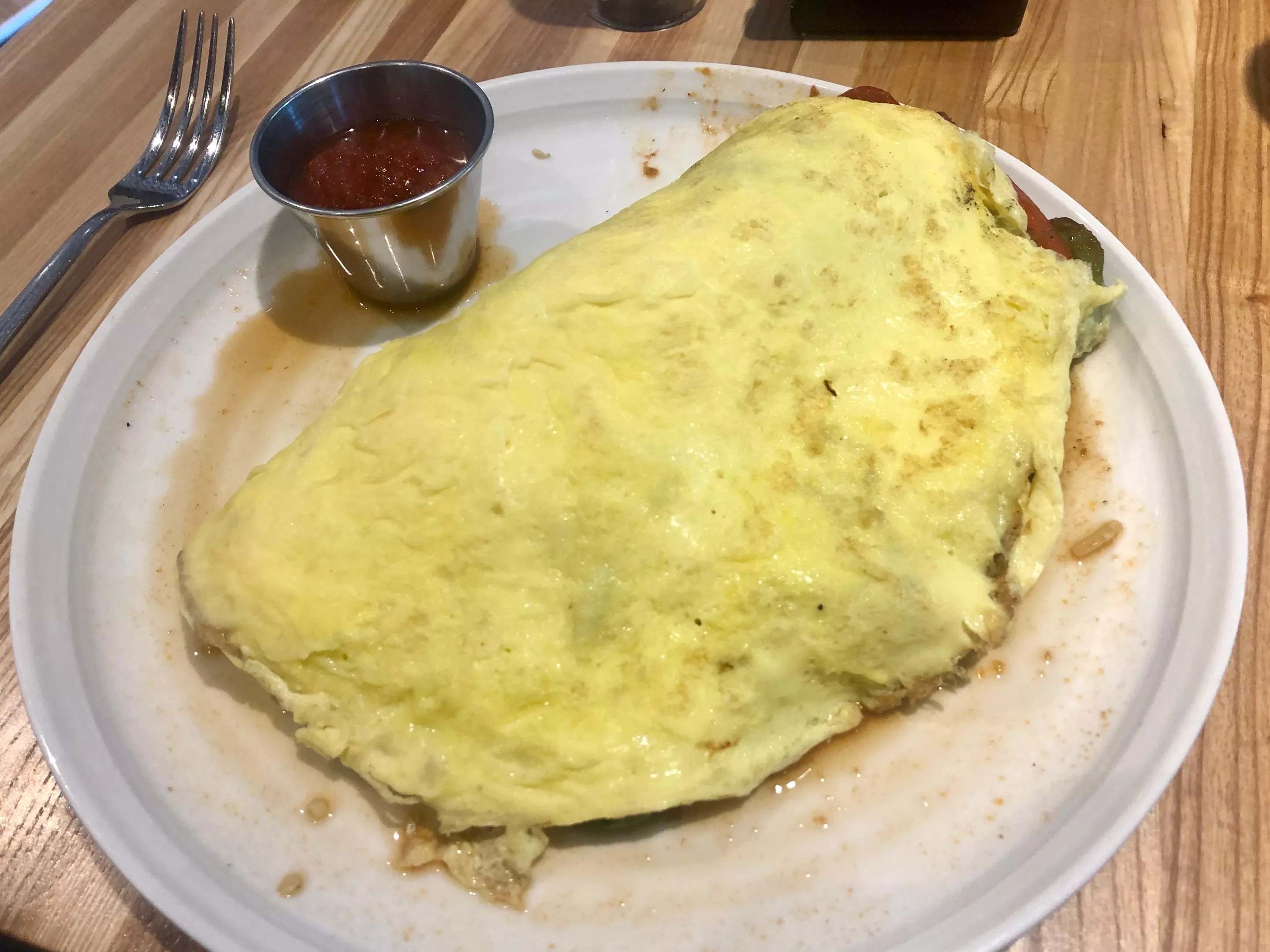 The ranch hand omelet (.98) sounds better than it tastes. The good thing is, it also tastes a bit better than it looks.