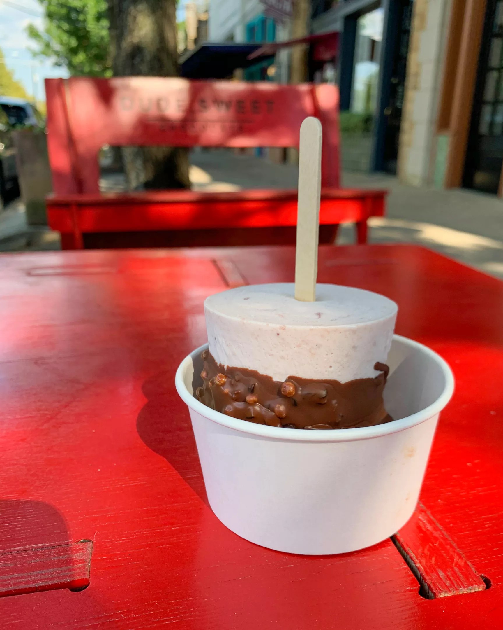 Dude, Sweet’s Bishop Arts location has a little seating area outside, vibrant red benches and a table you can’t miss. Your kulfi will be handed to you upside down in a cup to go. Take it out and shine it in the sun to brag to passers-by that you have a superior treat in your hands.