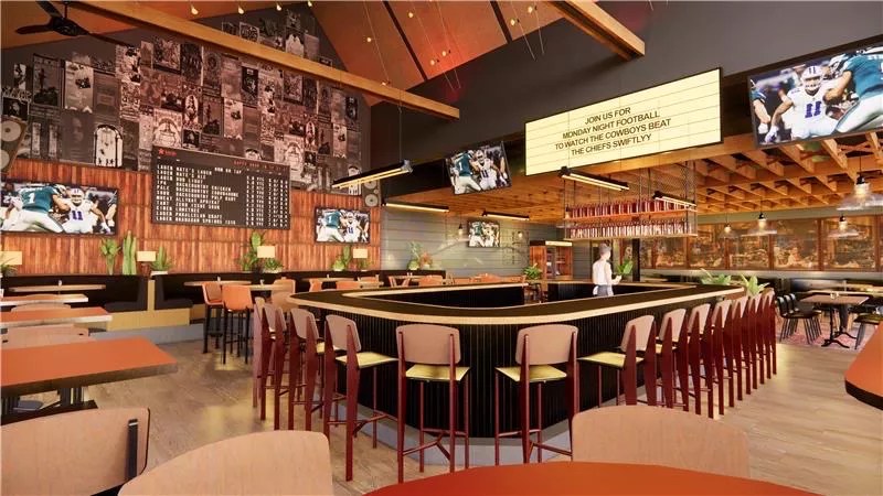 LPE is clearly going for a party vibe, and the 7,144-square-foot space will be available for renting out. Look for a combination of cozy details like area rugs and eclectic decor with sports memorabilia to create the right atmosphere while the big game is on.