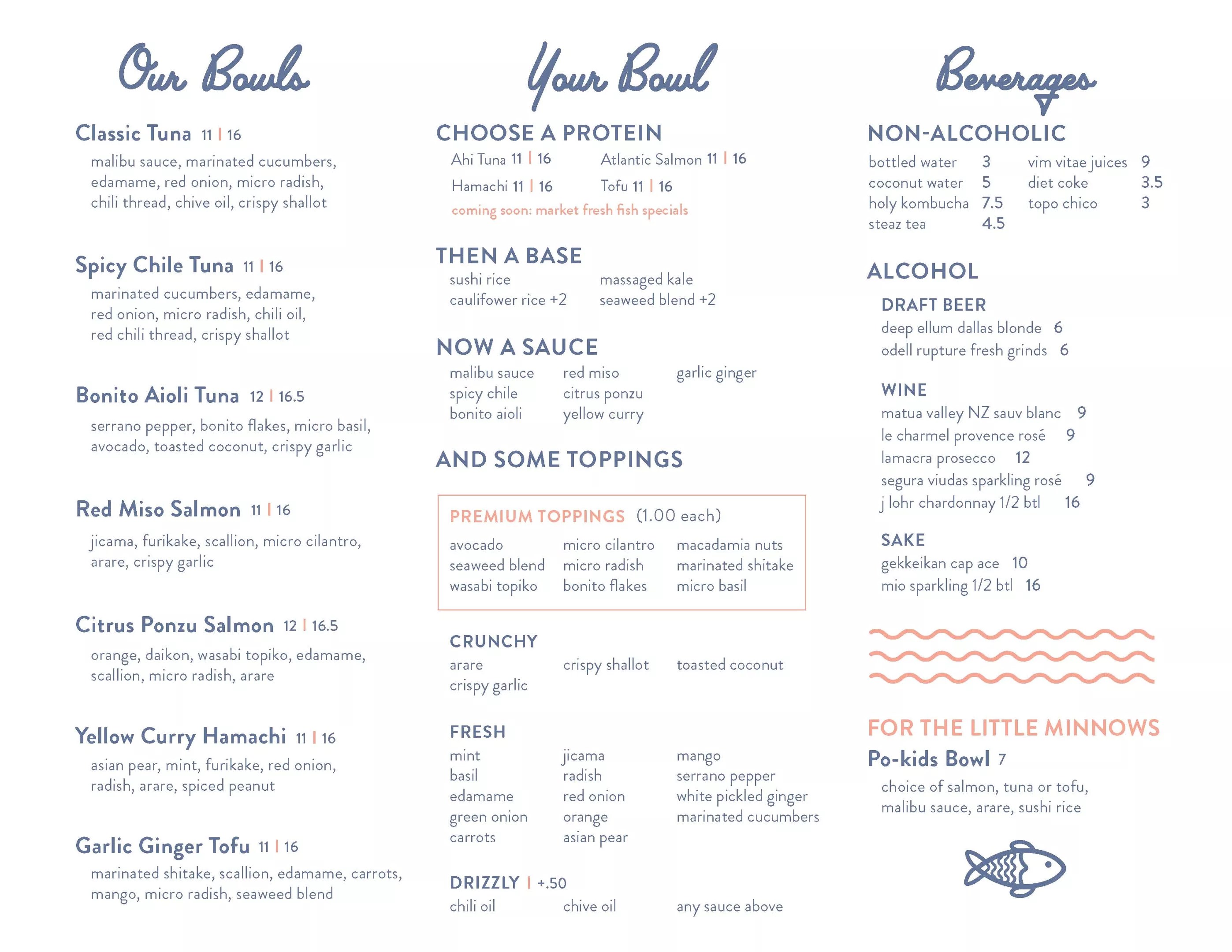 Malibu Poke’s menu.