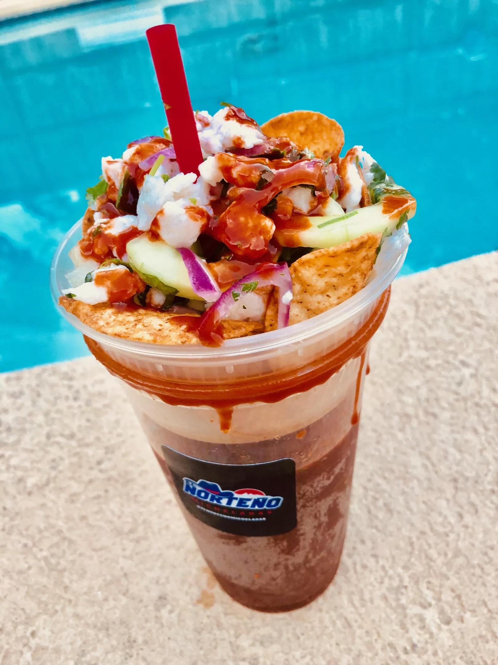 El Norteño is a Monterrey-style taqueria in the Cedar Crest neighborhood of southern Dallas, known for elotes and Cali-style michelada mixes. Co-owner Antonio Martinez-Arroyo’s signature dish is his Cheelotes, traditional elotes layered with freshly ground Flamin’ Hot Cheetos. The michelada mix is made by Martinez-Arroyo’s wife, Erika Martinez-Arroyo, a native Californian disappointed in the micheladas of Dallas. You can pick up a jar of her light-but-spicy michemiche mix for $15 from their location on Saner Avenue. For more variety, visit them in the Cedars each Wednesday night at Four Corners Brewing Company, 1311 S. Ervay St. Lotería, a version of bingo, starts at 7:30 p.m., and El Norteño’s two fancy micheladas – the La Fresca, with watermelon, mango, cucumber, chamoy and Tajín ($12), and the Ceviche Miche, with ceviche mix and Tostilocos chips ($15) – pair fabulously with Four Corners’ El Grito lager or El Chingón IPA.