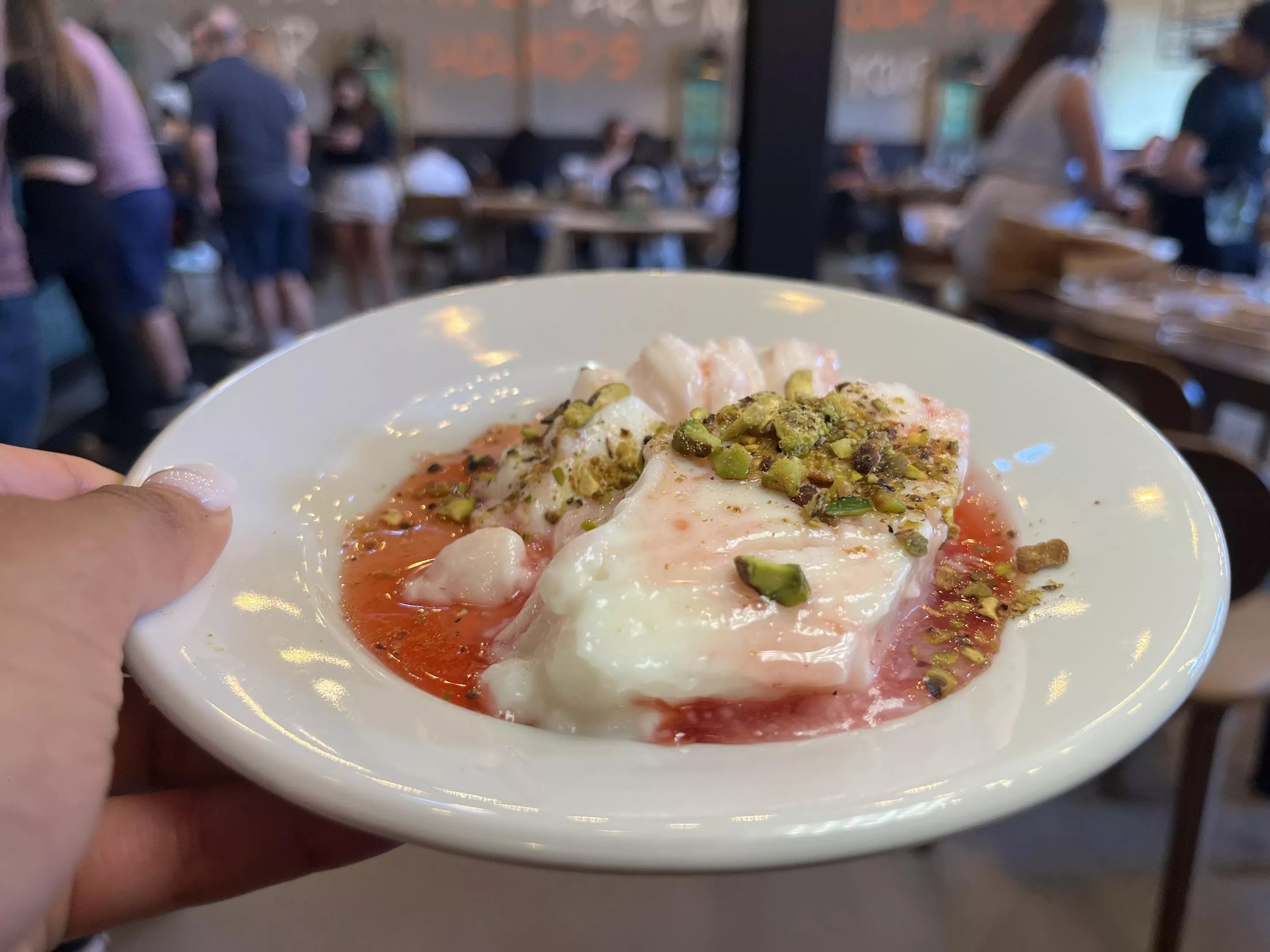Other traditionally Israeli dishes like the stewed lima beans, lamb kebab platter and slow-cooked tahini and beef make promising options to explore before landing on the unfancy dessert menu, which comes with just one option to choose from. Unsurprisingly, our sweet tooth lured us into buying the malabi, a traditional Middle Eastern milk-and-rice pudding dressed in rose-strawberry syrup topped with pistachios. If you care to linger around after food, a full-service bar adds to the allure.