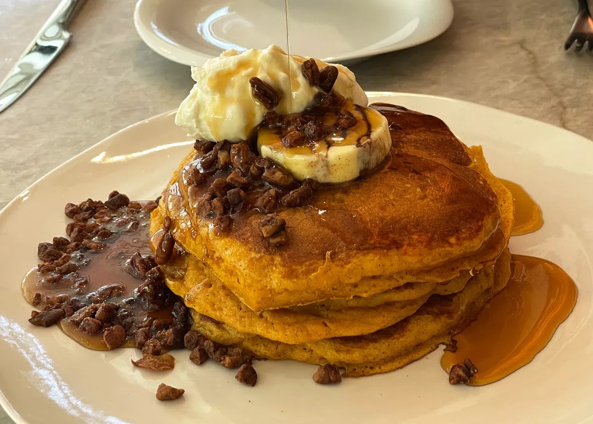 When pumpkin pancakes are involved, there is no savory vs. sweet breakfast debate.