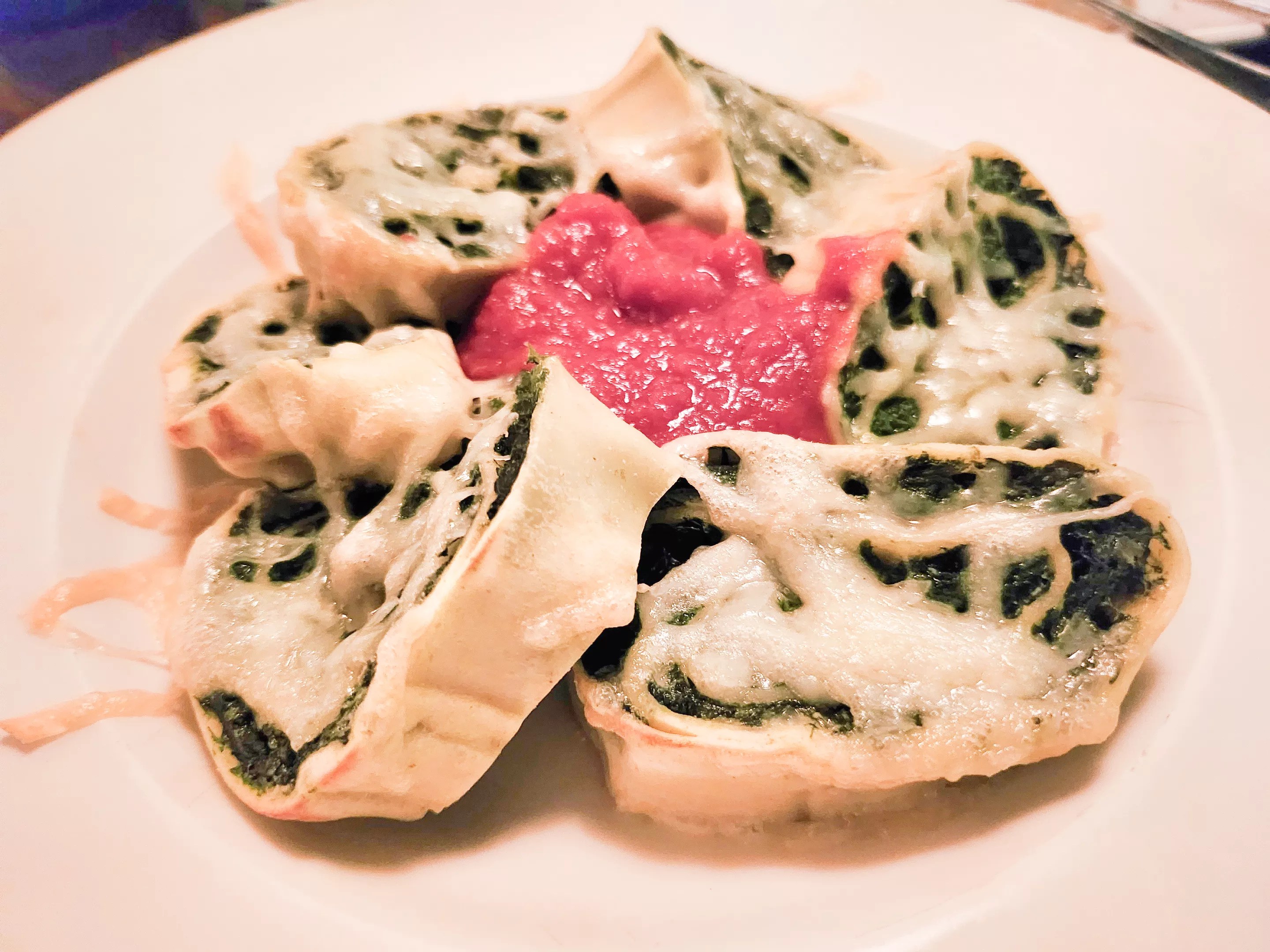 We went with the Rotolo Verde ($19), a house-made pasta, rolled with spinach and baked with Gruyere and mascarpone cheese. It’s complemented by a light tomato sauce. We ate ours with the focaccia we had left over from earlier and with a drift of Italian gravy.