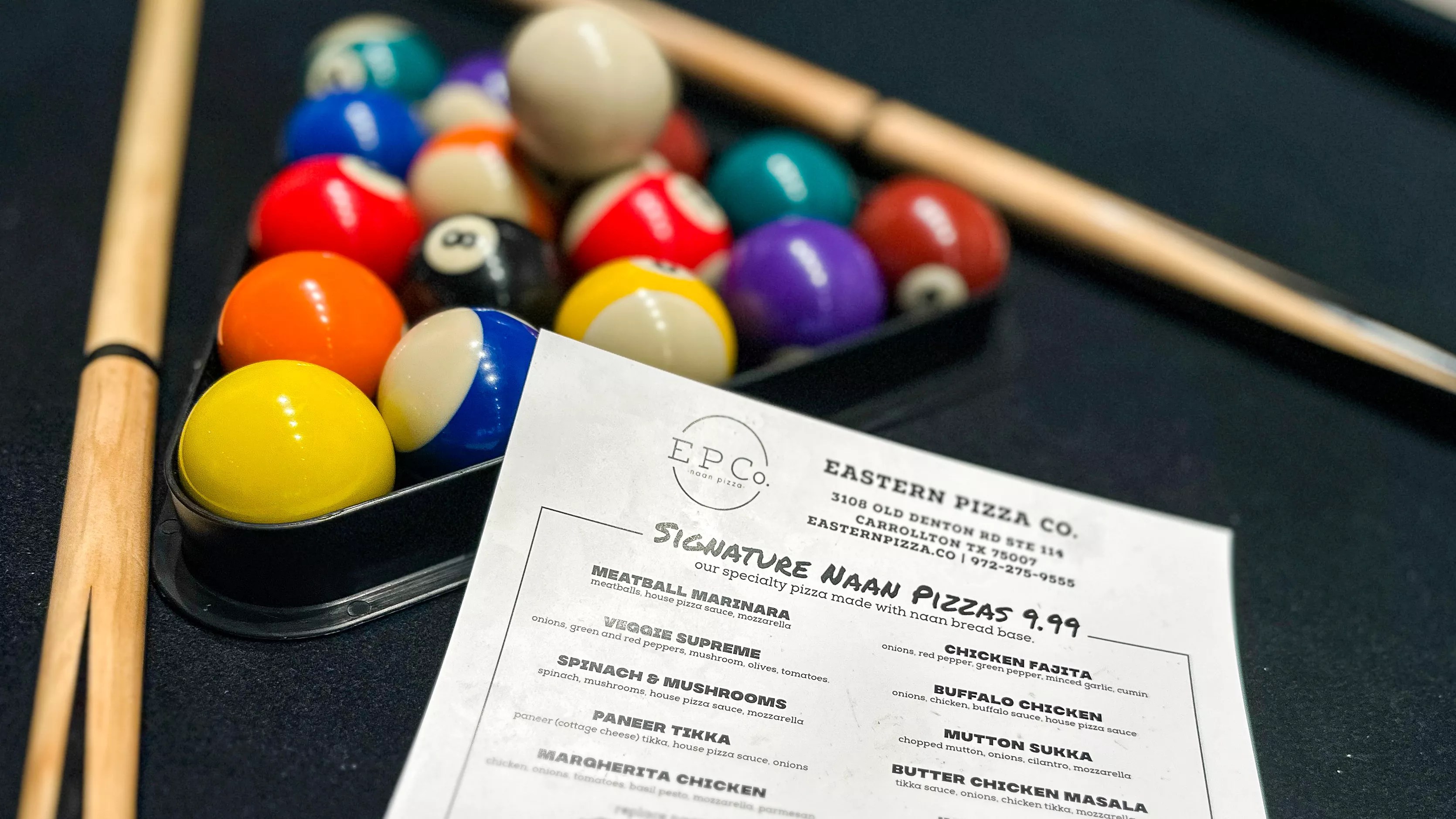 Eastern Pizza Co. is a new place in Carrollton that provides the perfect spot to play some pool and eat some Desi-style naan crust pizza.