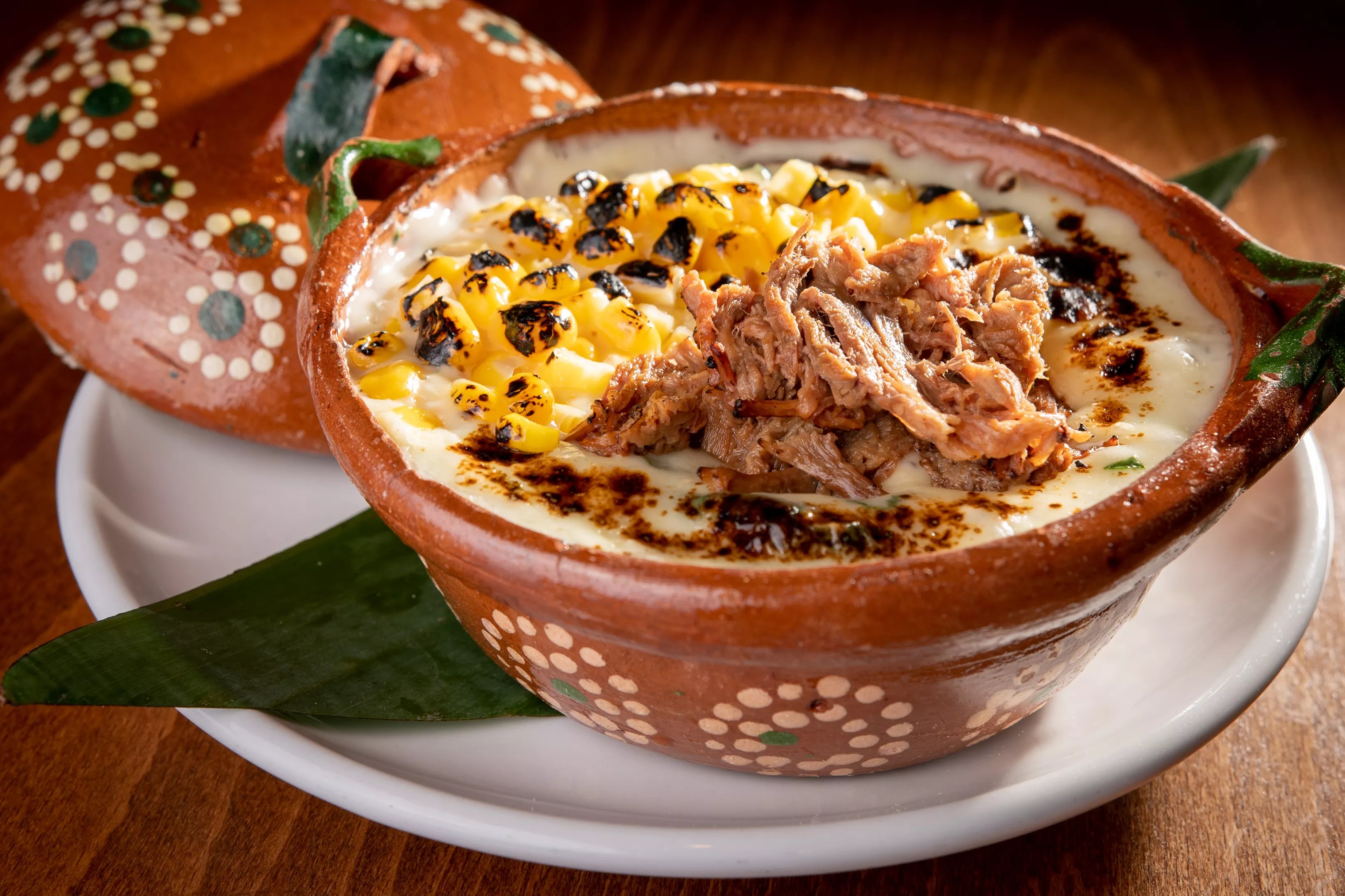 Last year we wrote about Taquero’s queso Oaxaca. The name here is a little misleading because it doesn’t have any Oaxacan cheese in it. But the mixture of mozzarella, queso asadero and white cheddar topped with charred corn and brisket does the trick. And the presentation is beautiful to boot.