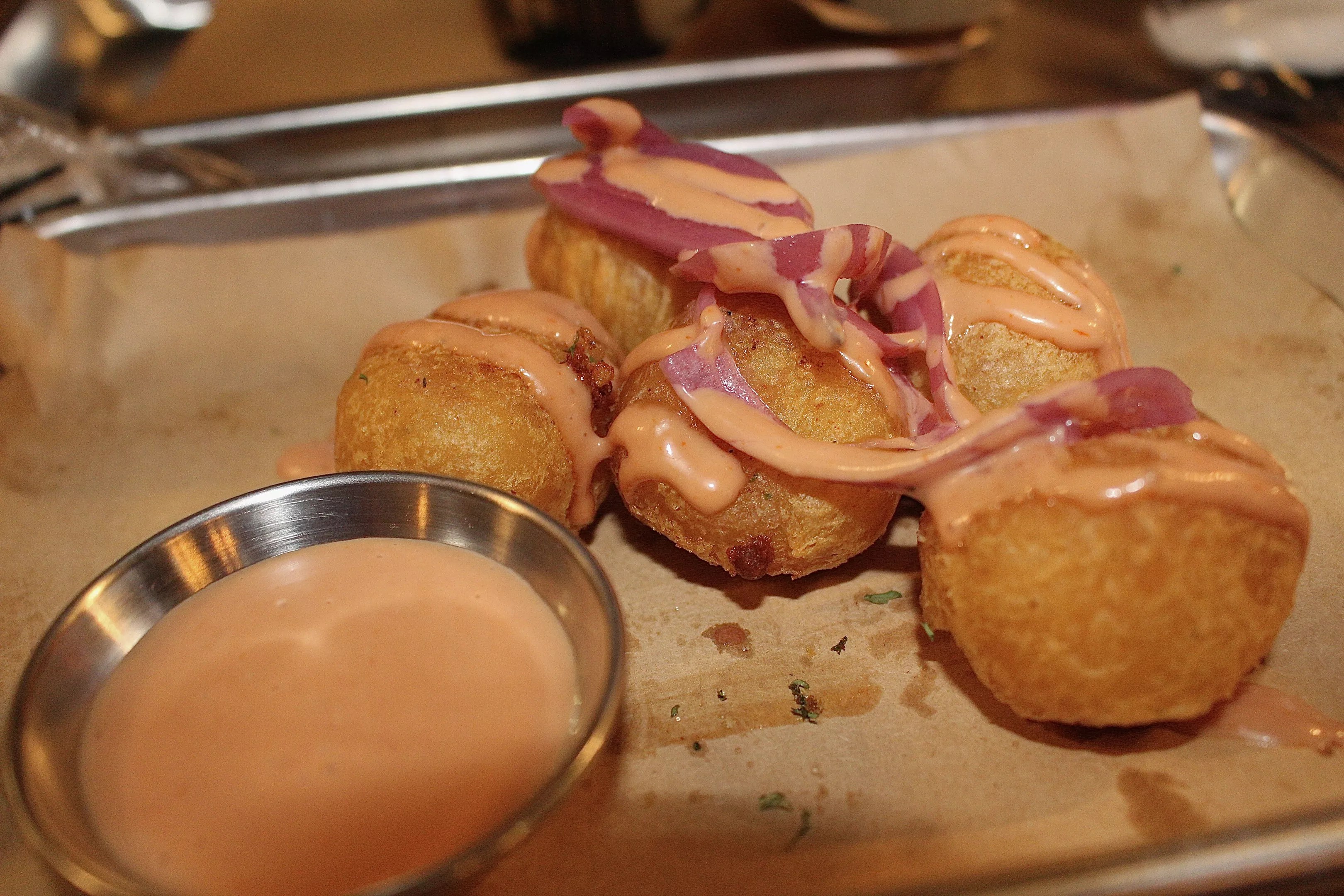 The fried yuca balls, or bolitas de yuca relleno de queso, were exactly like how they sound. Crispy. Seasoned. Gooey mozzarella on the inside. These come five for $11, with a side of Picadera’s signature sauce.