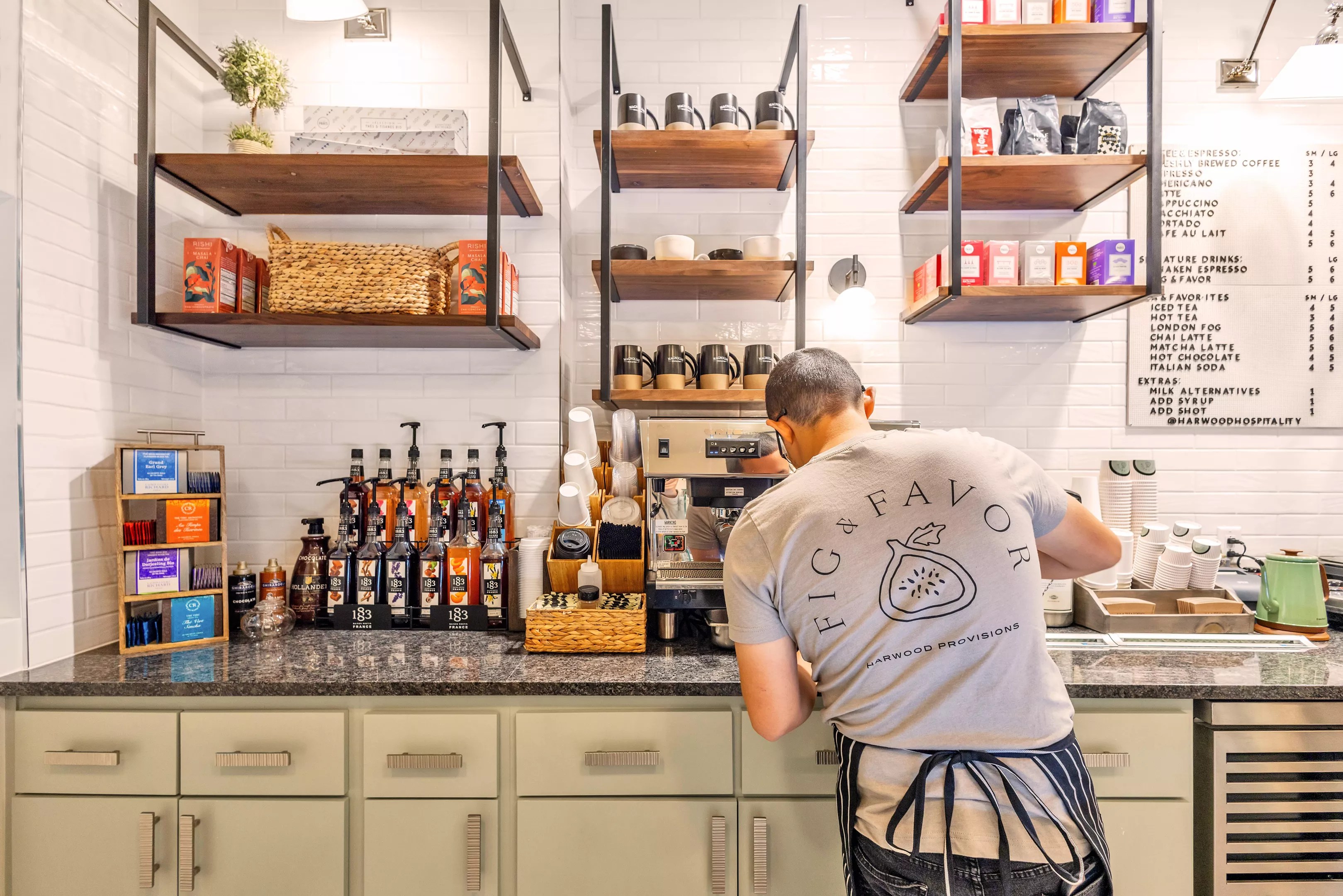 The grab-and-go food options will include sandwiches, salads, snacks and meal kits. Harwood Hospitality Group’s vice president of culinary Taylor Kearney explains that the best of the 11 existing Harwood concepts have been put together at Fig & Favor. “Look forward to Dolce Rivera’s pasta dishes to take home for an easy dinner, Magnolia: Sous Le Pont’s coffee beans, a sandwich inspired by Mercat Bistro’s, and steak and jerky from our HWD Beef program – just to name a few,” Kearney says.