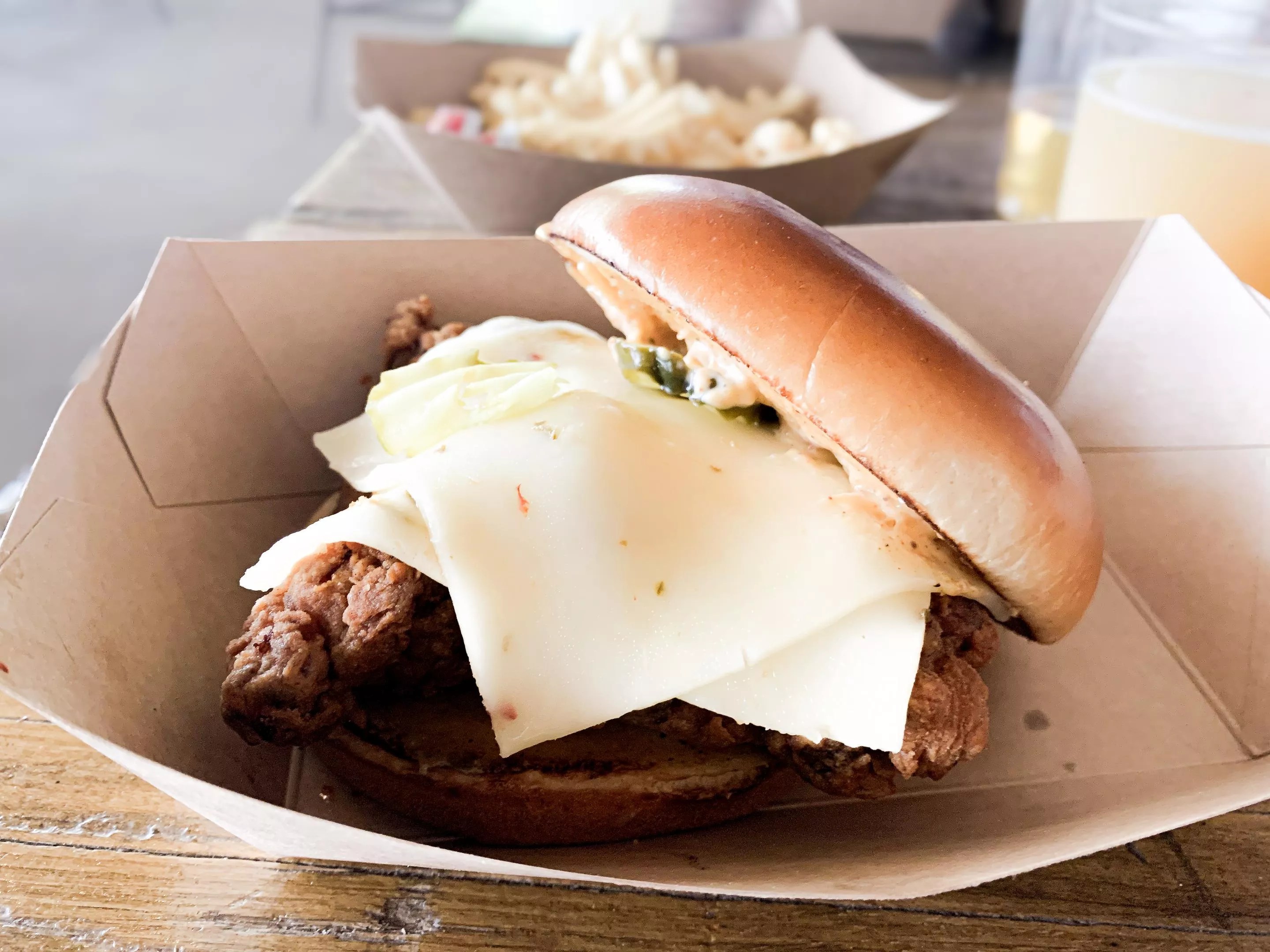 Juice Pack-brined crispy chicken sandwich.
