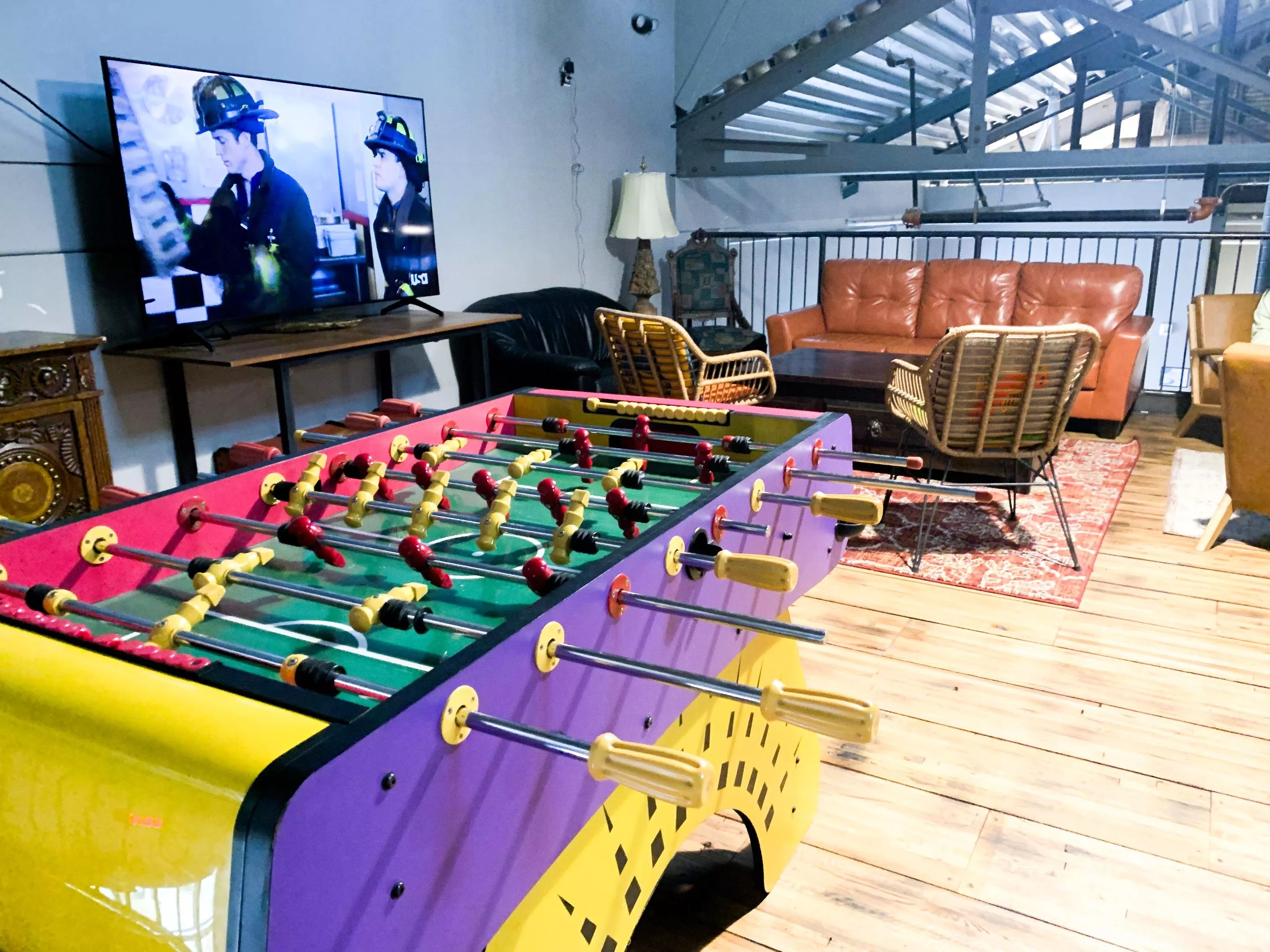 The facility has plenty of places to explore, like the mezzanine above the bar, with a foosball table, couch and TV for a living room vibe. Lewis is looking forward to opening up the outdoor stage for a summer concert series on Saturday nights.