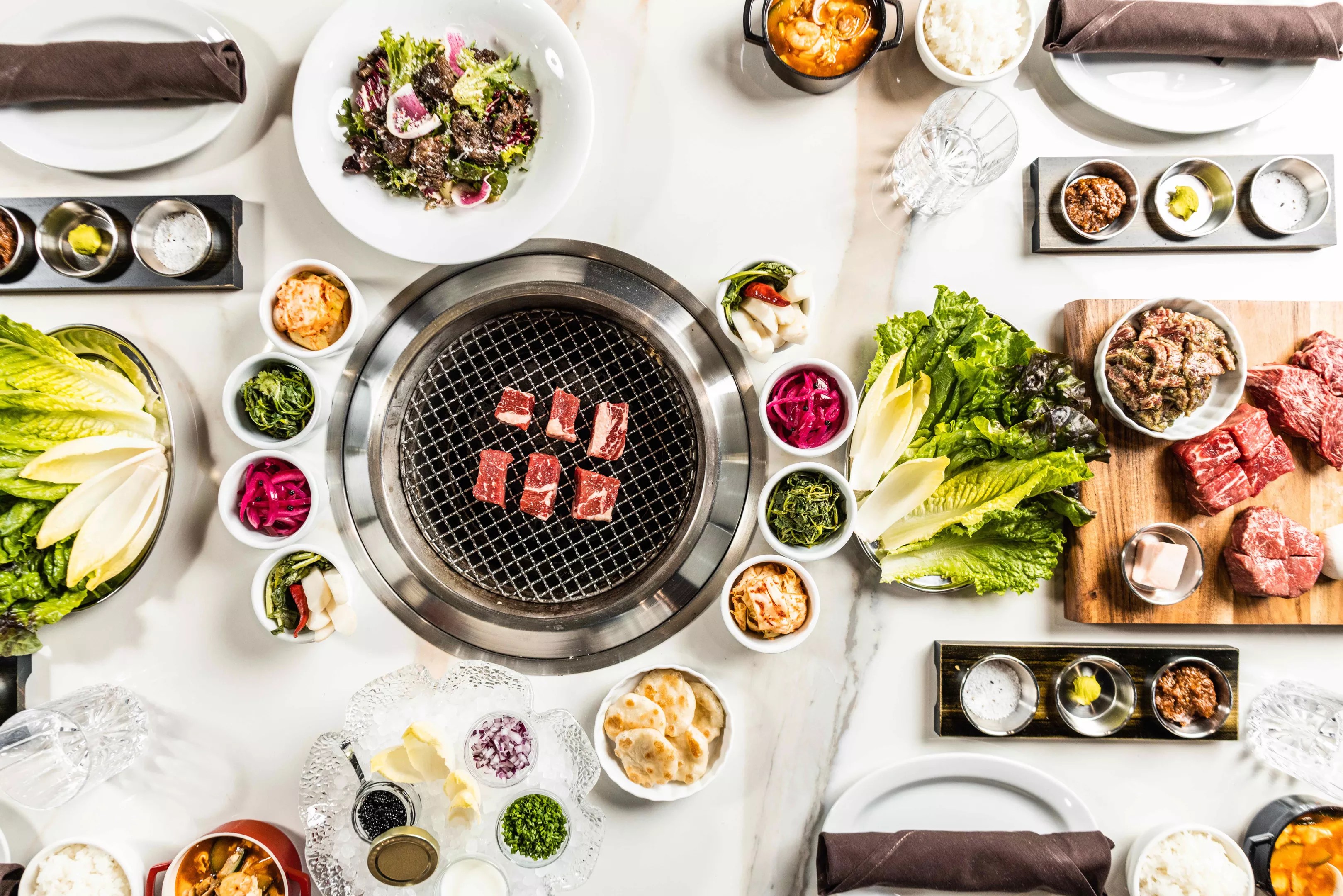 Nuri Grill offers community-style dining with a grill at the center of each table where servers cook the meat. Guests looking for a more interactive experience can cooking themselves.