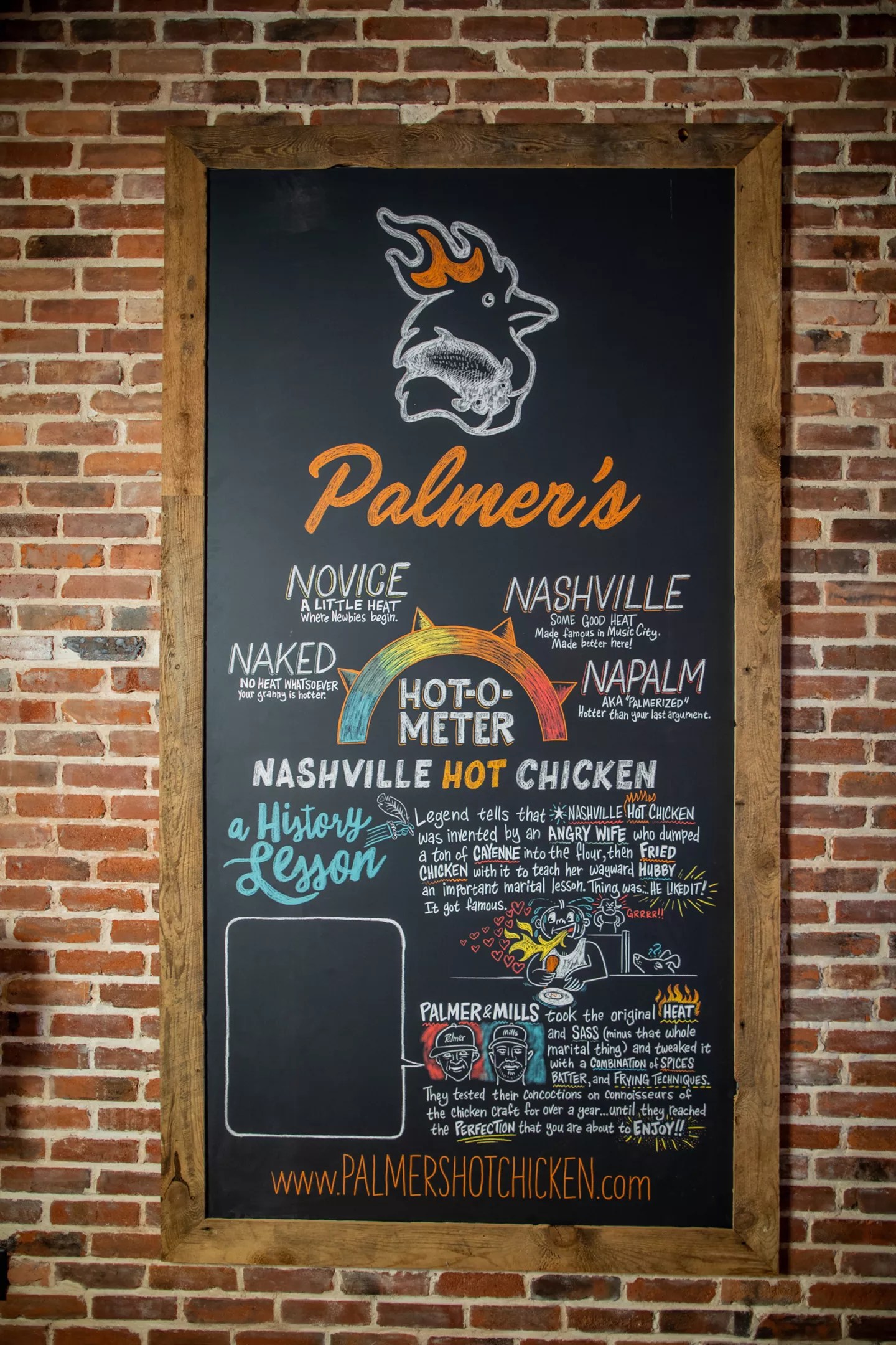 Properly preparing Nashville hot chicken is a 24-hour process from start to finish, paying homage to the Nashville hot chicken creator (according to the Palmer’s release), Thornton Prince.