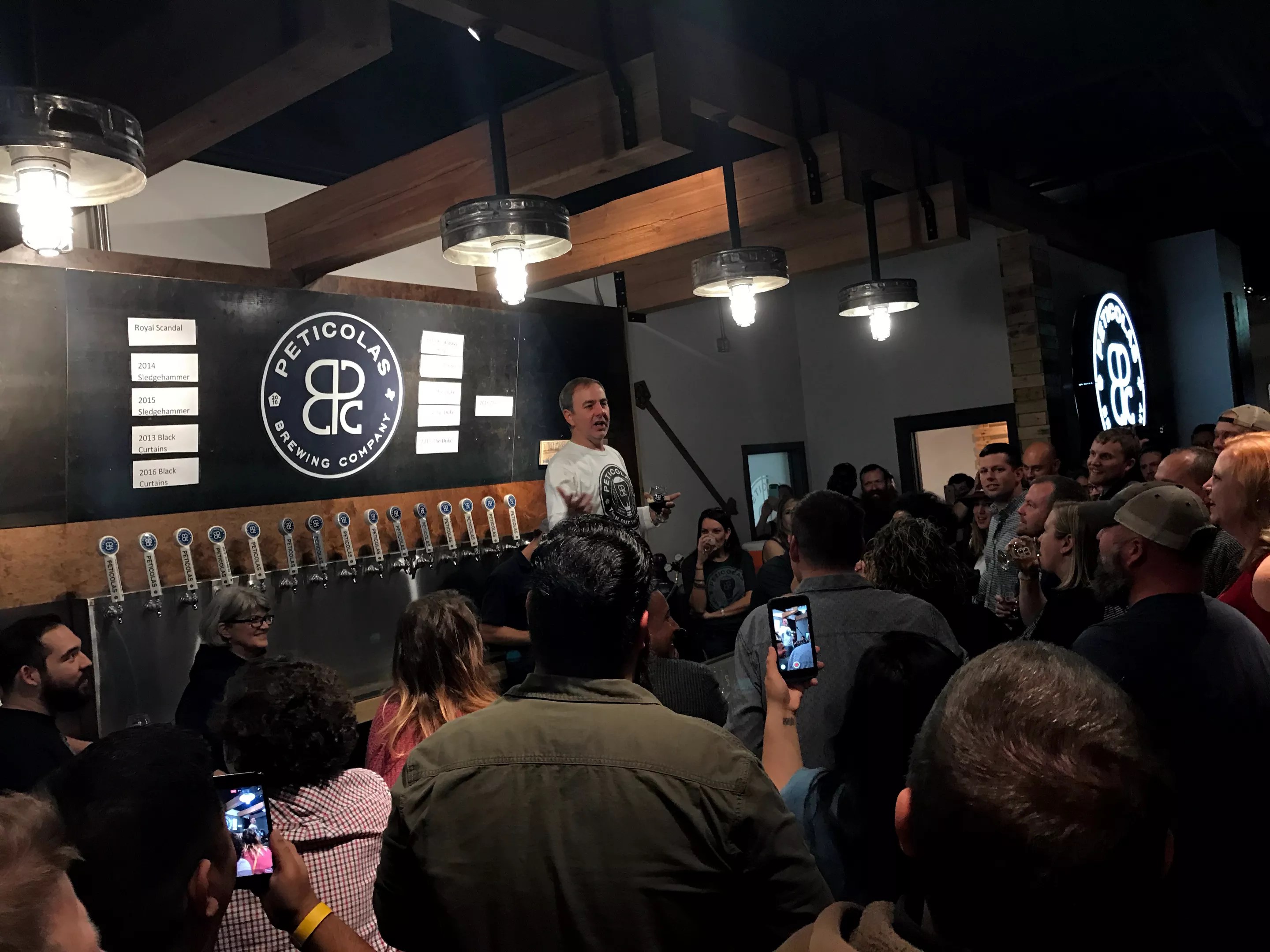 This year, they built out a 2,500-square foot taproom complete with 16 taps, one nitro tap, one cask engine, a second floor with stage and table-top games and an open-air space near the lengthy bar. On New Year’s Eve, Peticolas finally unveiled the space at the two tastings. The events sold out weeks in advance, with more than 300 people attending each session.