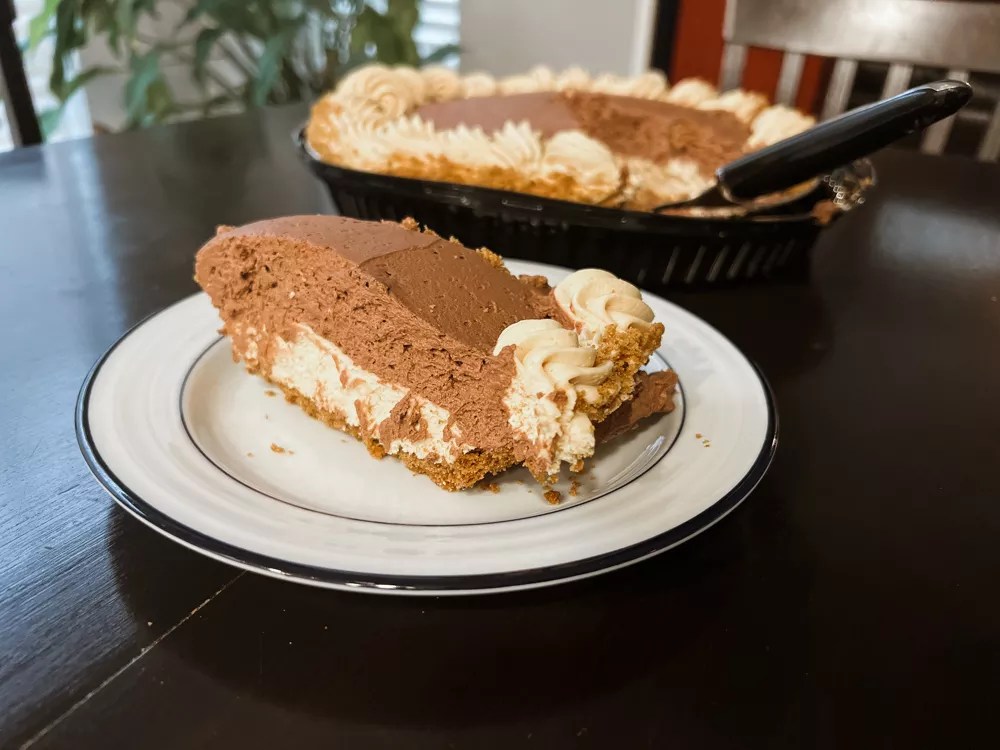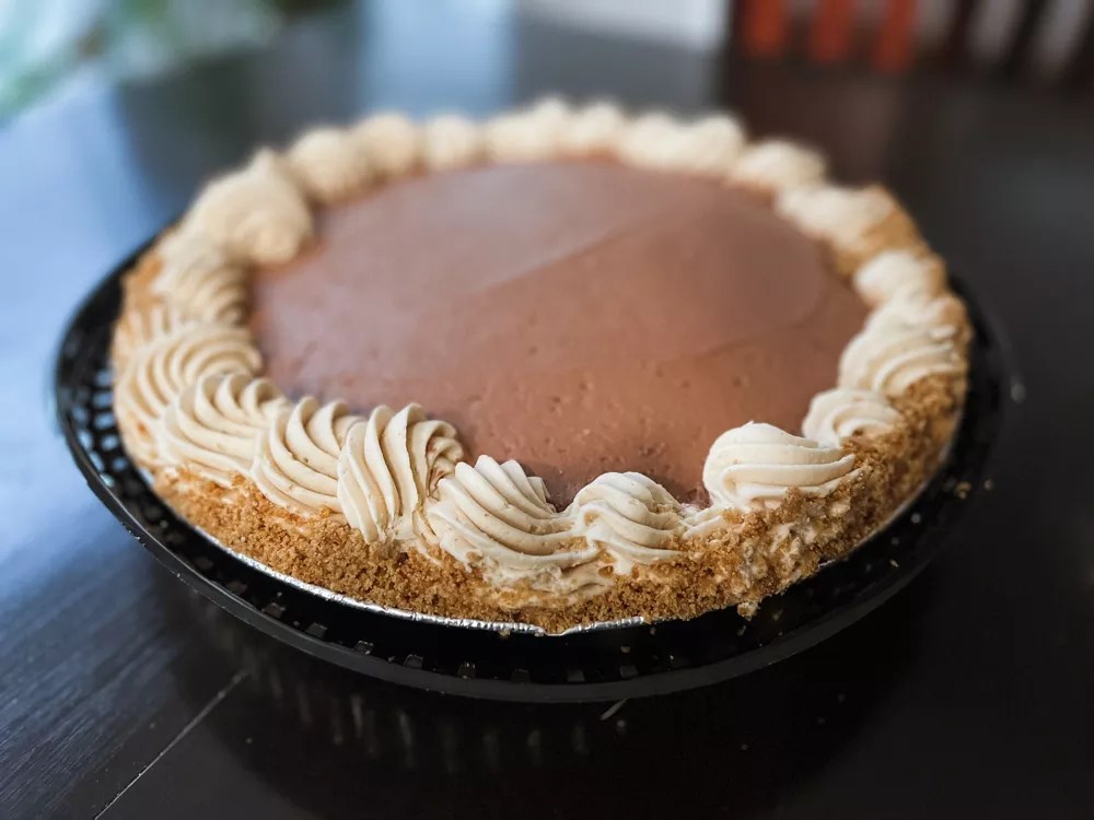 What Costco hath wrought is the mother of all cream pies: Mama’s Daughters’ or Norma’s has nothing on this bad boy. Let’s start at the bottom, where a graham cracker crust is tasked with holding the pie together. Next up is a layer of peanut butter cream, then a layer of chocolate cream. More peanut butter cream is piped around the edge of the pie, then more graham cracker crumbs are sprinkled on top. The only thing more decadent would have been if they rimmed the damn thing in Reese’s peanut butter cups.