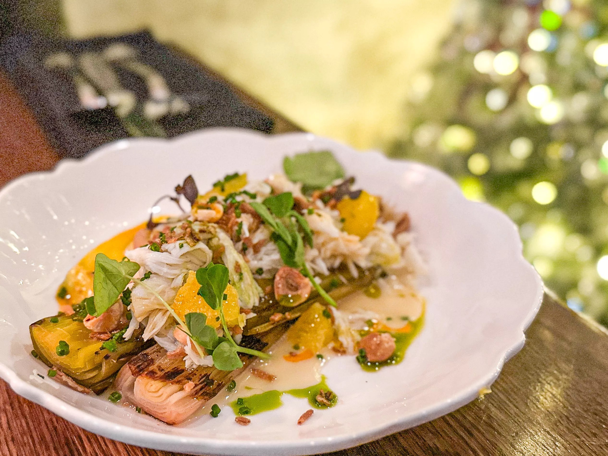 One of the highlights: grilled leeks with crab and hazelnuts in orange and brown butter.