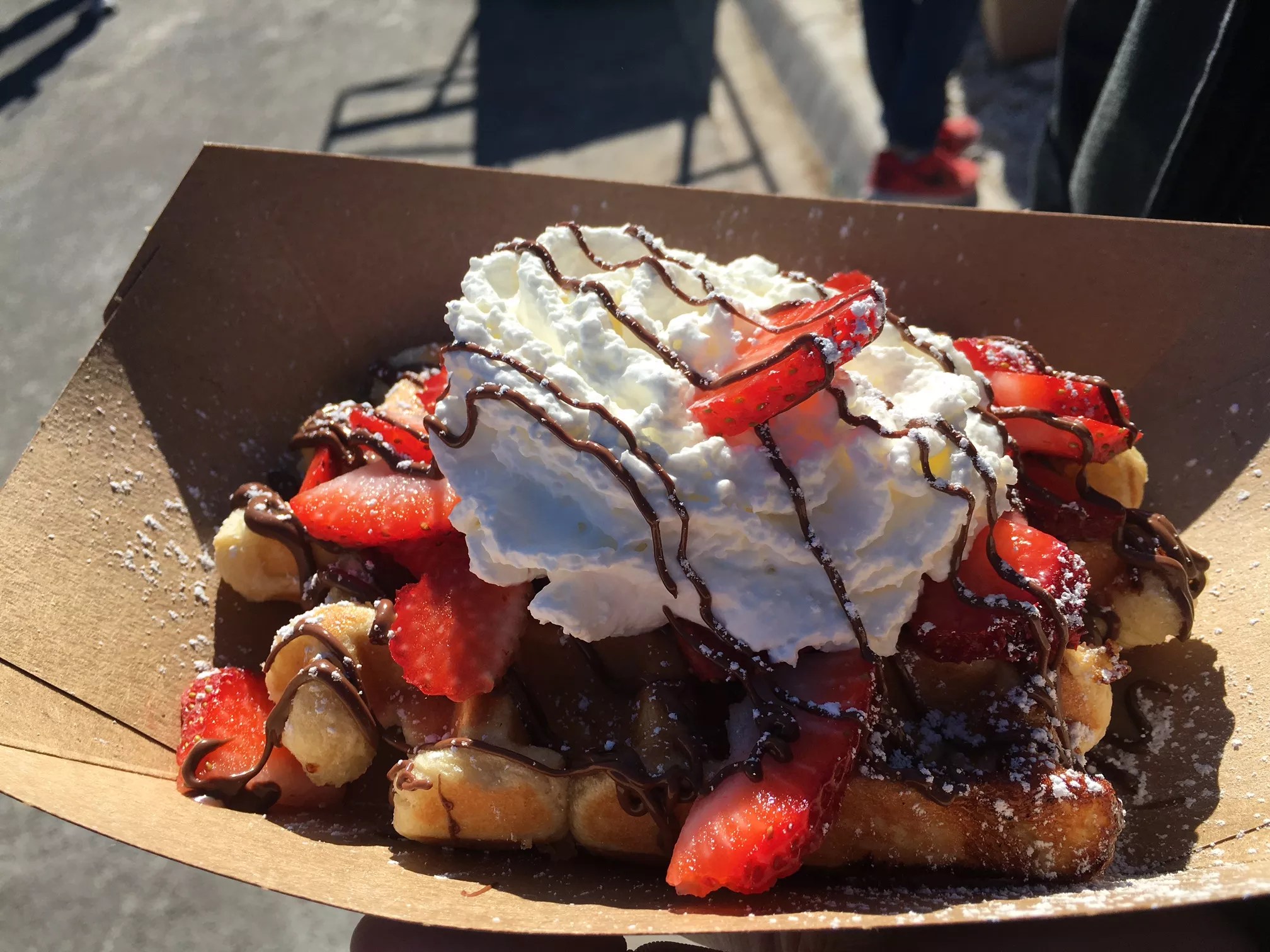 The waffles from Press Waffle Company were sweet, fluffy and one of the easier things to eat while standing.