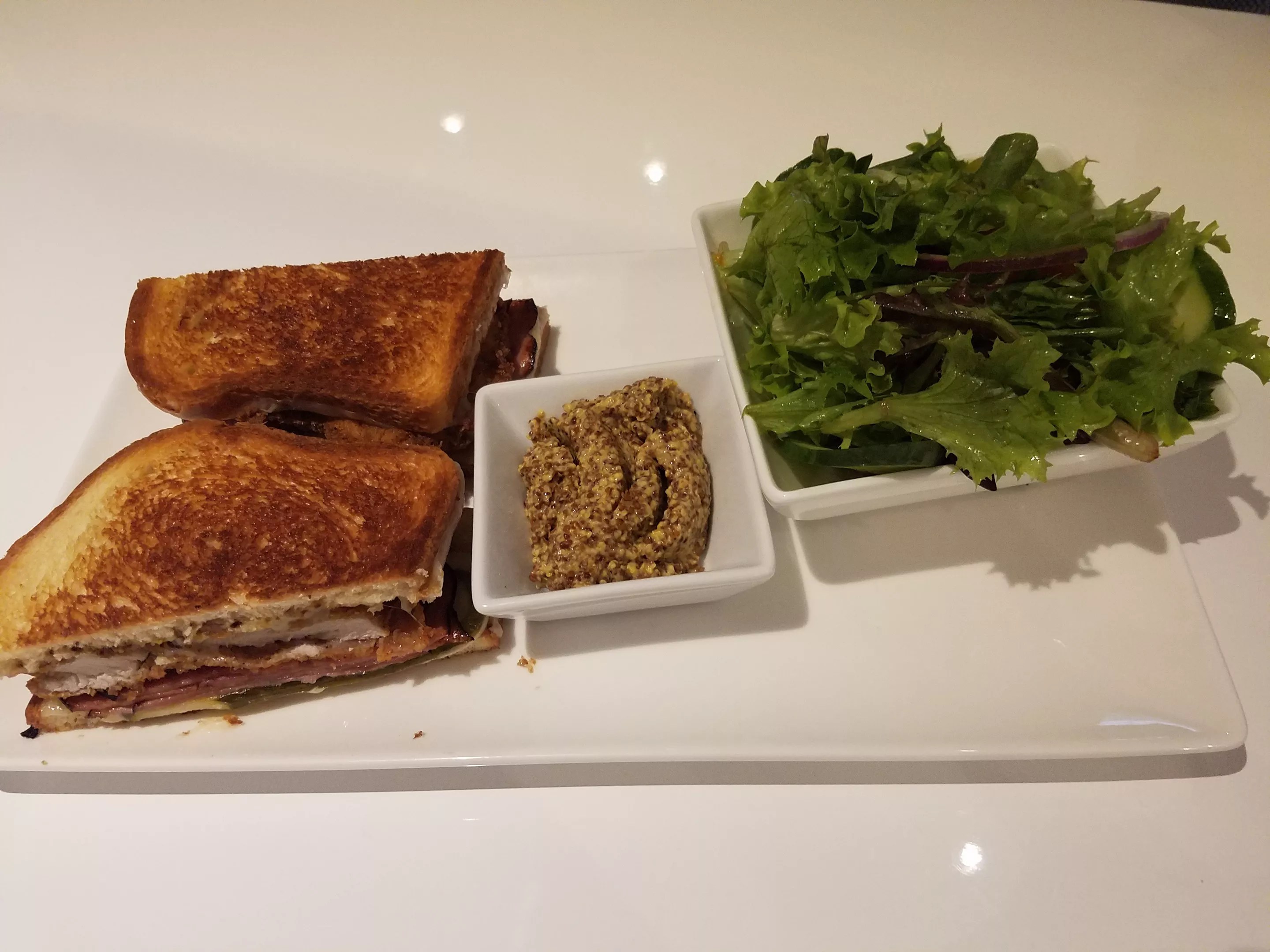 The chicken melt is served with a side salad and side mustard. In case you just really, really like mustard.