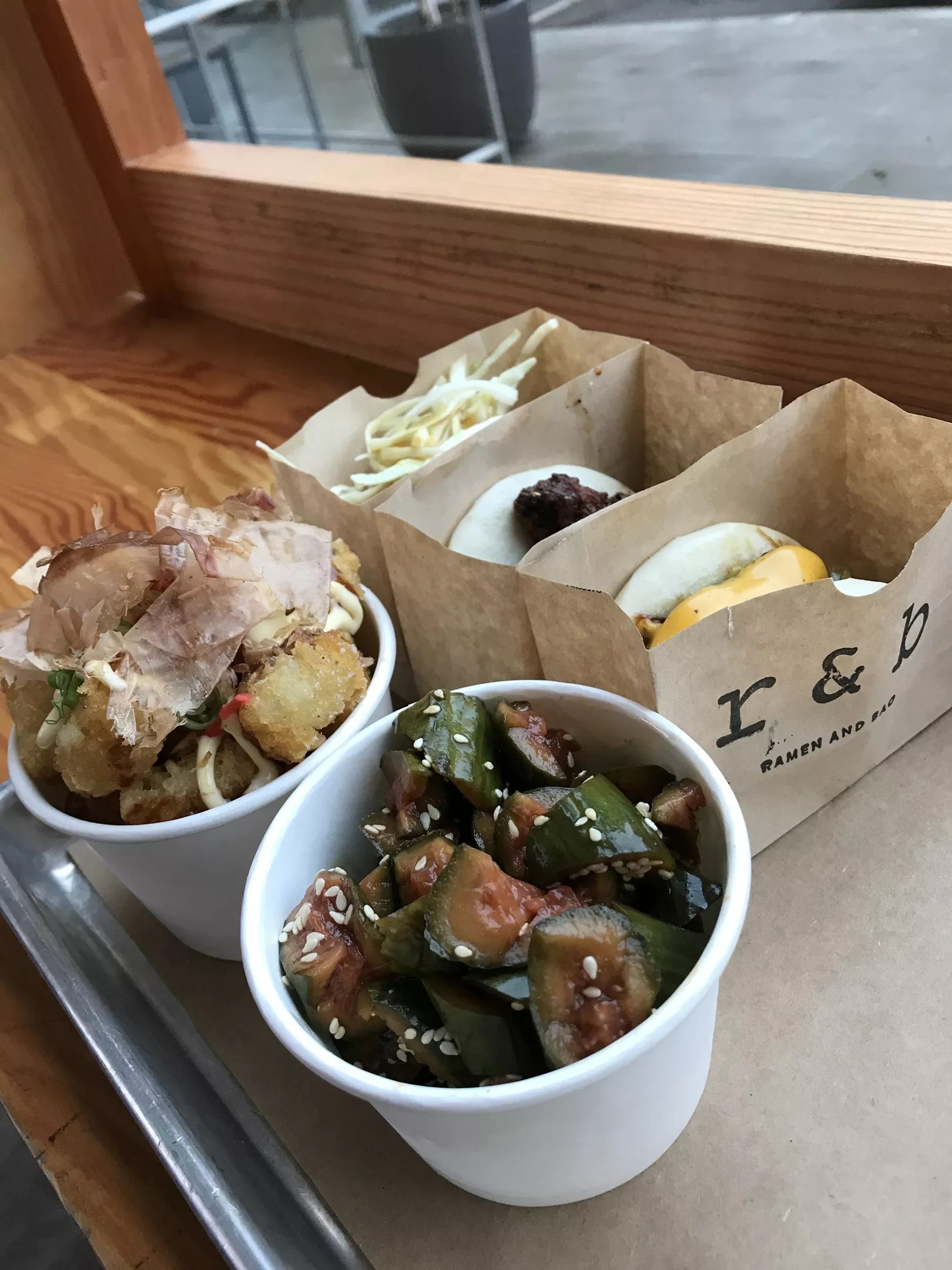Not a fan or ramen or bao? No worries. The Okonomiyaki-style tater tots ($3) and Smacked Cucumber ($4) are great, flavorful alternatives.