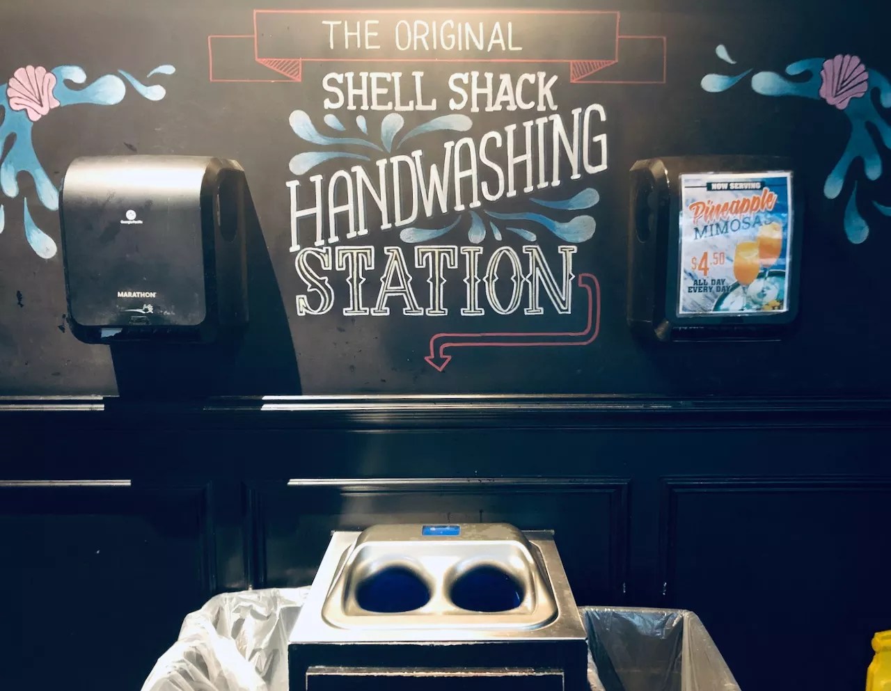 Originally installed to tidy up after a few pounds of crawfish, this hospital-grade handwashing station is now a serious selling point.