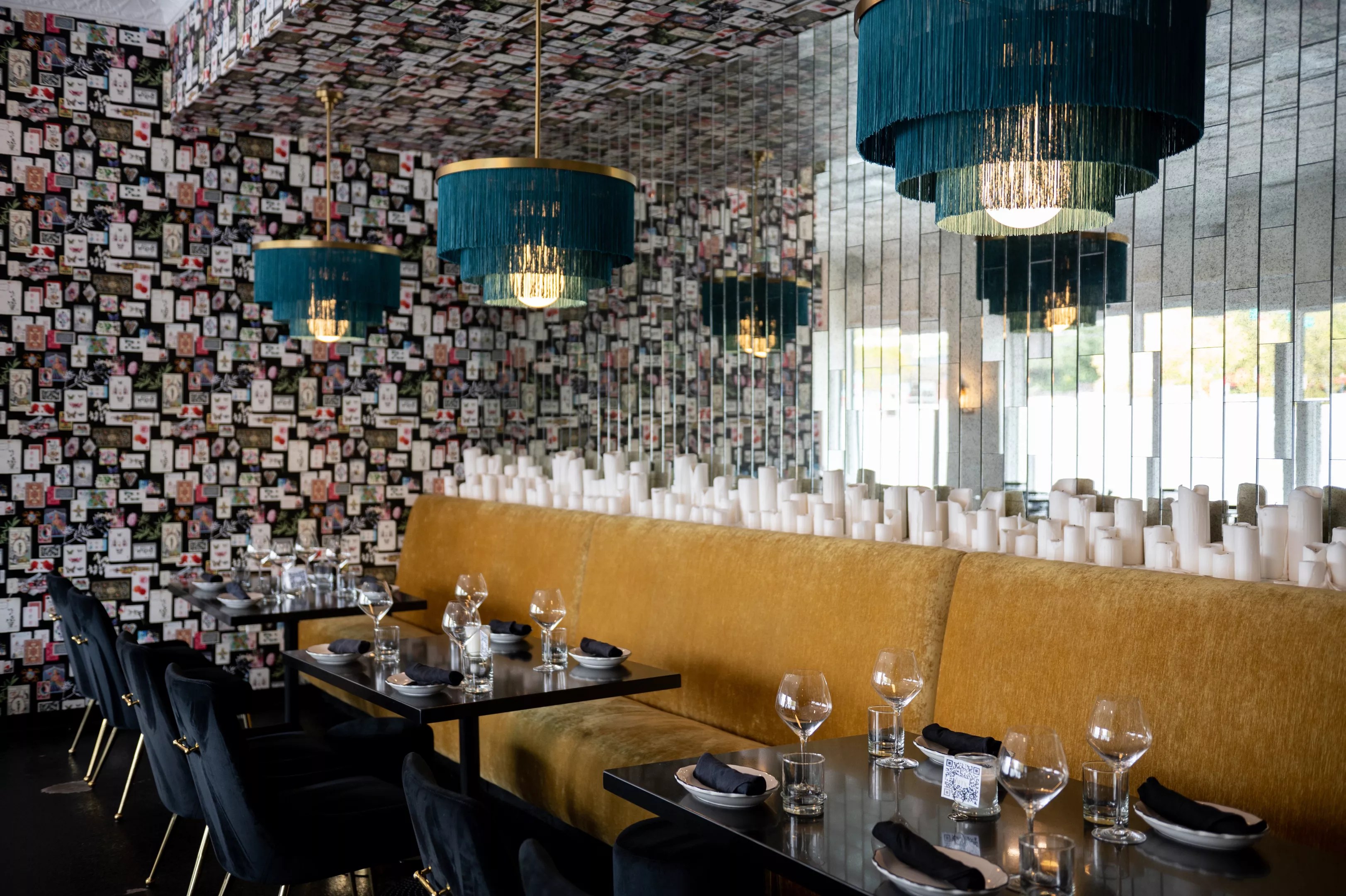 At the far end of me’s dining room, a deep green velvet curtain hides an adjacent room called the Elephant Bar, a separate bar fit for about a dozen parched patrons. Nayeb says the bar furthers her goal of making me a destination choice.