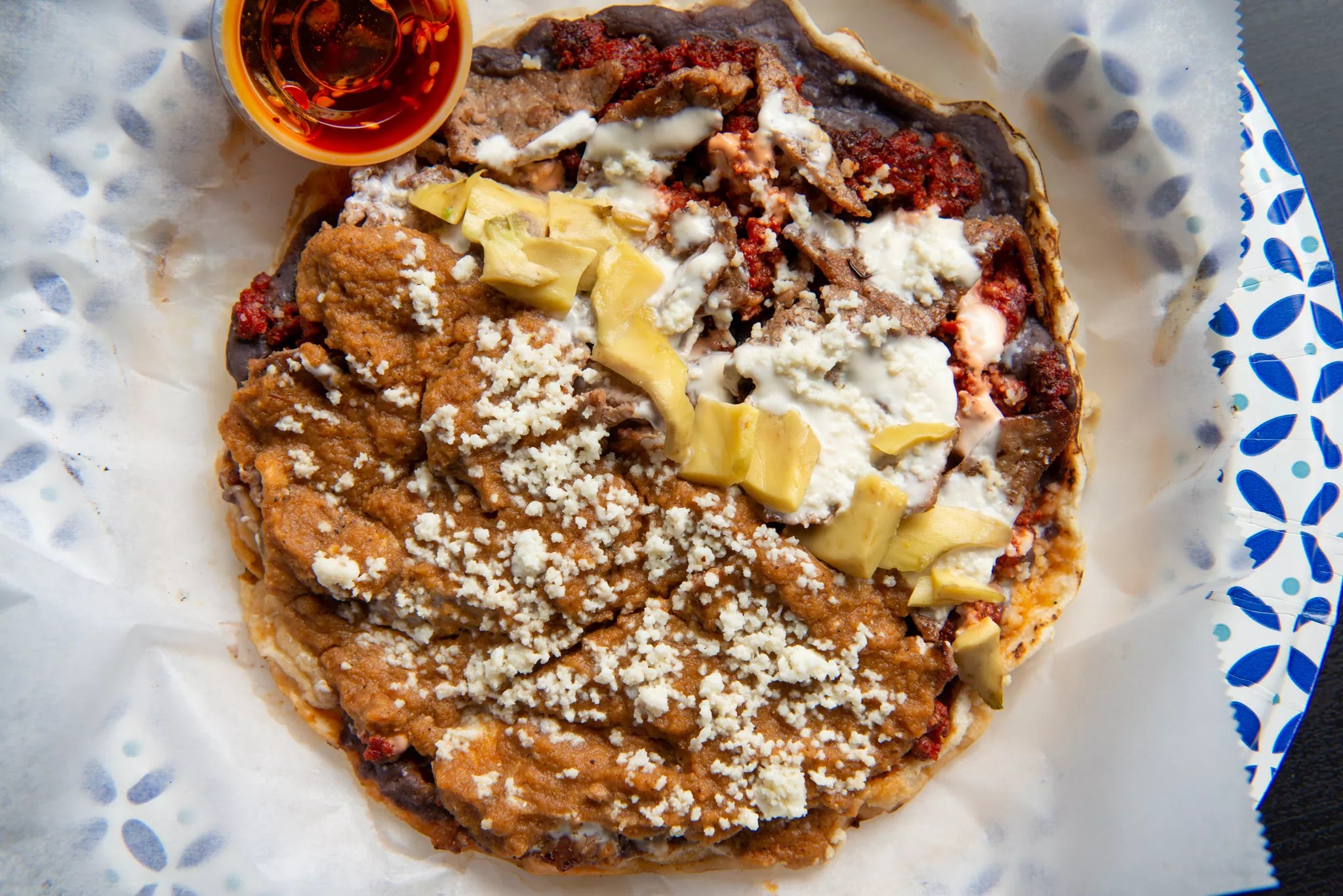 Tlayudas are often compared to pizzas by non-Mexicans, and some restaurants have embraced the “Mexican pizza” name. The comparison is useful but superficial: They’re both round doughs with a bunch of delicious stuff on top. People all around the world have made flatbread-like foods for millennia, and the tlayuda may well be older than the pizza. Its name derives from Nahuatl, and indigenous Mexican people have been putting fillings on tortillas for at least 500 years.